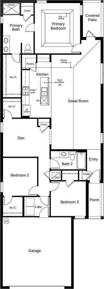Designed for effortless living, this charming single-story home features an open floor plan with durable vinyl plank flooring throughout common and wet areas and a spacious great room with volume ceilings. The well-appointed kitchen offers 36-in. upper cabinets, granite countertops, a large pantry, an eat-in island, and Whirlpool® stainless steel appliances. The private primary suite showcases a tray ceiling and a connecting bath with walk-in closet, dual-sink vanity, linen closet, and walk-in shower with seat and tile surround. An extended covered back patio enhances outdoor living, while additional highlights include a versatile den, ENERGY STAR® certified LED lighting, Moen® faucets, and Kohler® sinks. Self-guided tours available!