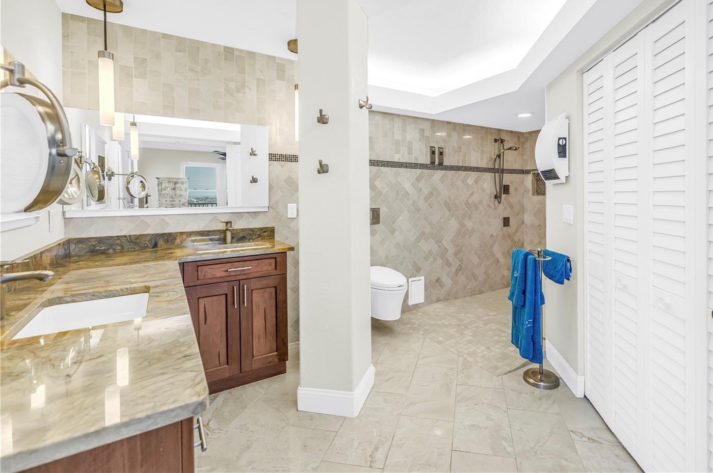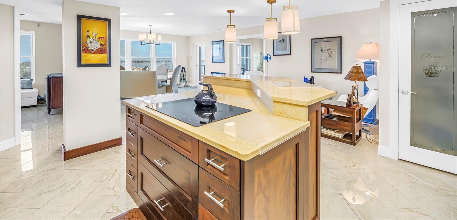 Enjoy a spacious living area with west-facing views showcasing the Gulf of Mexico, the Intracoastal Waterway, and breathtaking sunsets—a rare vantage point made even more special by the unit’s elevated corner location. The home is complemented by updated kitchen and bathrooms featuring modern finishes, granite countertops, and newer appliances.