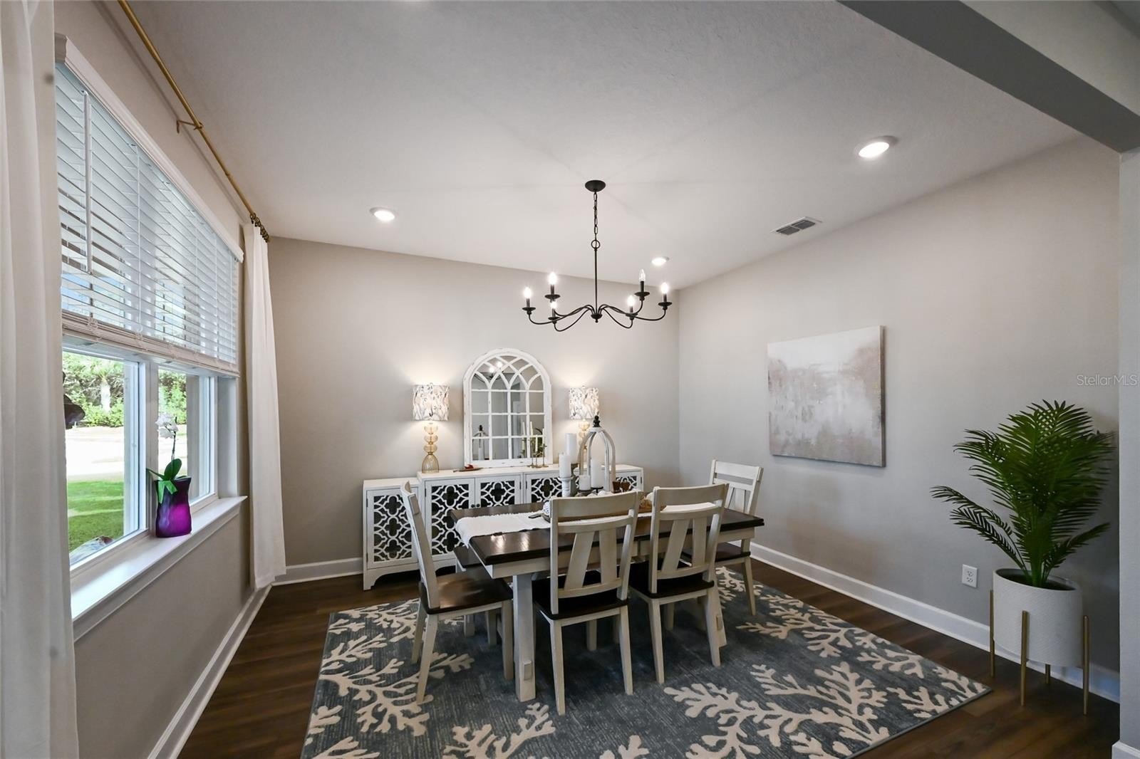 This STUNNING five bedroom, three bathroom Meritage home offers 2,988 sq. ft. of thoughtfully designed living space with a two car garage, perfectly positioned on a quiet CUL-DE-SAC withing the sought-after gated community of Savanna in Lakewood Ranch. From the moment you enter, you’re welcomed by a BEAUTIFUL entryway featuring TRAY ceilings and a striking modern wood ACCENT wall, setting the tone for the rest of the home. A versatile front room can be used as a FORMAL dining area or flex space and offers lovely views of the outdoors. The open concept floor plan flows seamlessly into the kitchen and living room combination, making it perfect for entertaining. The kitchen is a chef’s dream with UPGRADED cabinetry, TILED backsplash, BUILT-IN oven, cooktop, stainless steel hood, stainless steel appliances, an island with seating, modern pendant lighting, and a walk-in pantry. Just off the kitchen is a casual dining area with sliders overlooking the pond and backyard. The living room is both inviting and serene, featuring windows with lanai views and another MODERN WOOD ACCENT wall. The first floor also includes a convenient bedroom or office, along with a beautifully upgraded full bathroom featuring a modern vanity, tub/shower combo, stylish wood detailing, and DESIGNER wallpaper. LUXURY VINYL plank flooring runs throughout the entire first floor. Upstairs, updated WOOD STAIRS AND RAILINGS lead to an open media room, ideal for movie nights or a game room. The primary suite is bright and spacious, with pond views, tray ceilings, a wood accent wall, and an ensuite bath offering dual sinks and a walk-in glass enclosed tiled shower. Three additional generously sized bedrooms share a full bath with dual sinks and a tub/shower combo. The laundry room is conveniently located upstairs and includes cabinetry and a utility sink. All bedrooms feature upgraded carpet. Step outside to a PEACEFUL, fully FENCED backyard with a covered paved lanai, sealed pavers, and tranquil pond views, creating the perfect setting for entertaining, relaxing, or enjoying breathtaking sunsets. The home is enhanced by UPGRADED LANDSCAPING with PALM TREES and white STONE accents, adding to its curb appeal. A new humidifier system has also been installed along with a dedicated EV CHARGER for added convenience. This move-in-ready home is truly a GEM, with every detail thoughtfully designed. Savanna is a fabulous community with LOW HOA resort-style amenities such as a clubhouse, swimming pool, state-of-the-art fitness center, basketball courts, playground, dog park and numerous walking paths. Lakewood Ranch is known for their A+ rated school system and is perfectly located just a short ride to downtown Sarasota, St. Pete, world class shopping, fine dining and the FAMOUS Gulf beaches! Don't wait to make this your HOME and begin your FLORIDA Lifestyle!