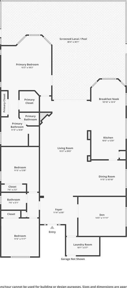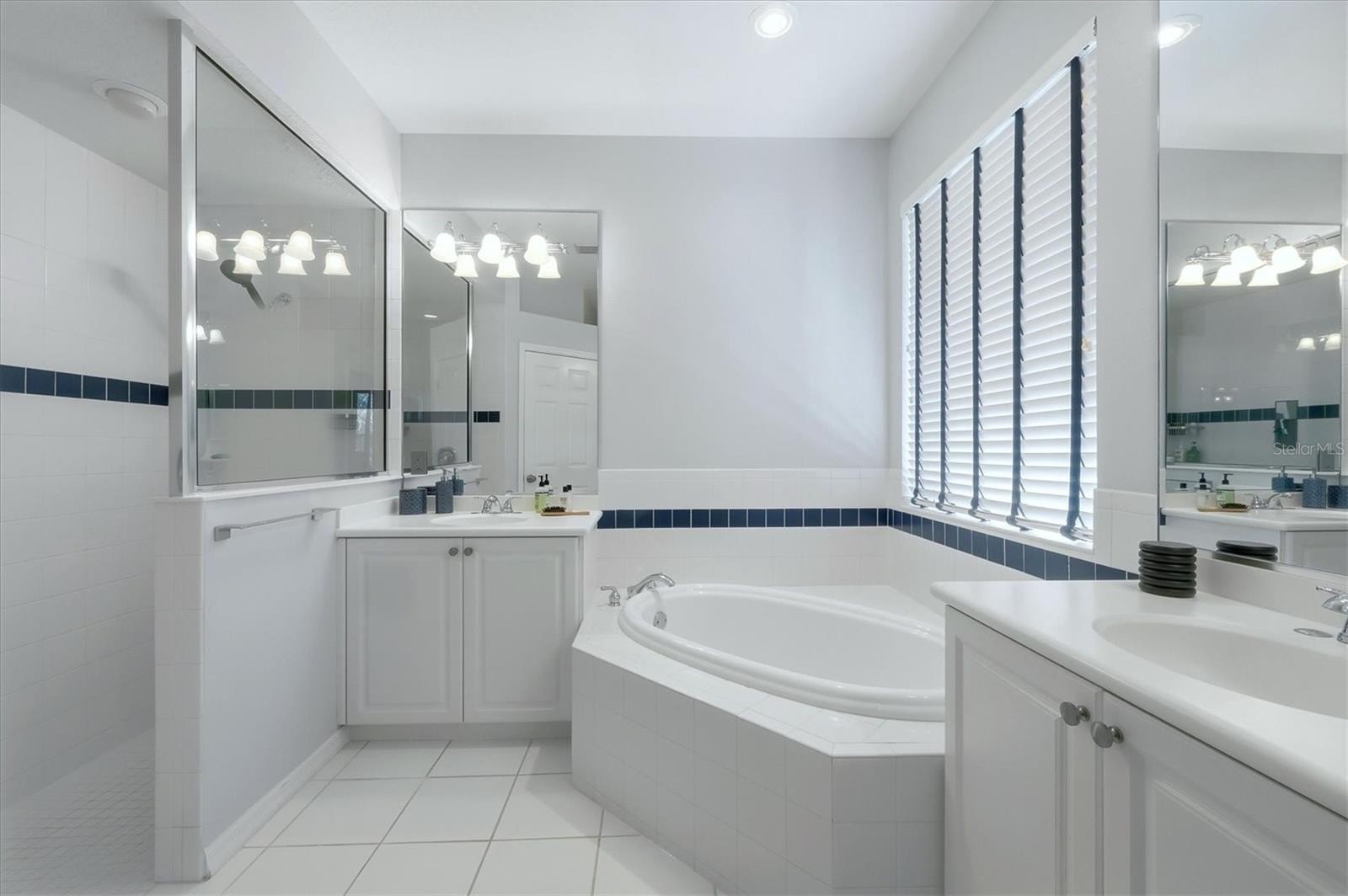 The den provides a versatile space for a home office or flex room. The primary suite offers a true retreat with direct pool access, dual closets, and an ensuite bathroom featuring dual vanities, a soaking tub, and walk-in shower. Two additional guest bedrooms and a full bath are thoughtfully separated for privacy.