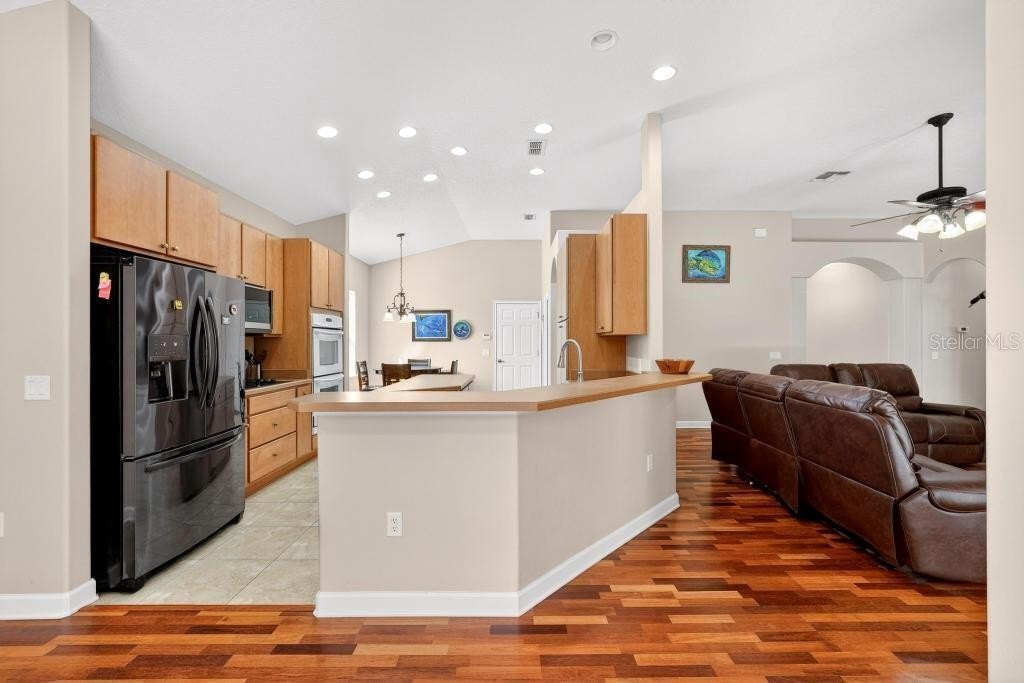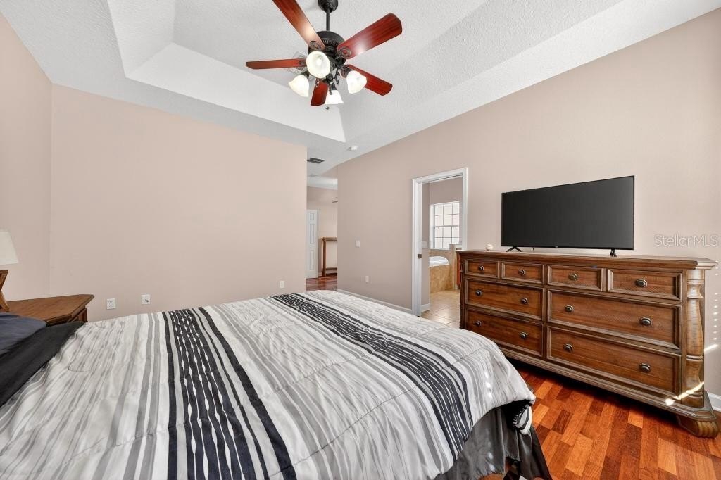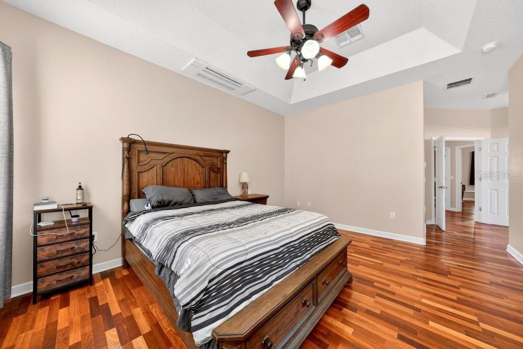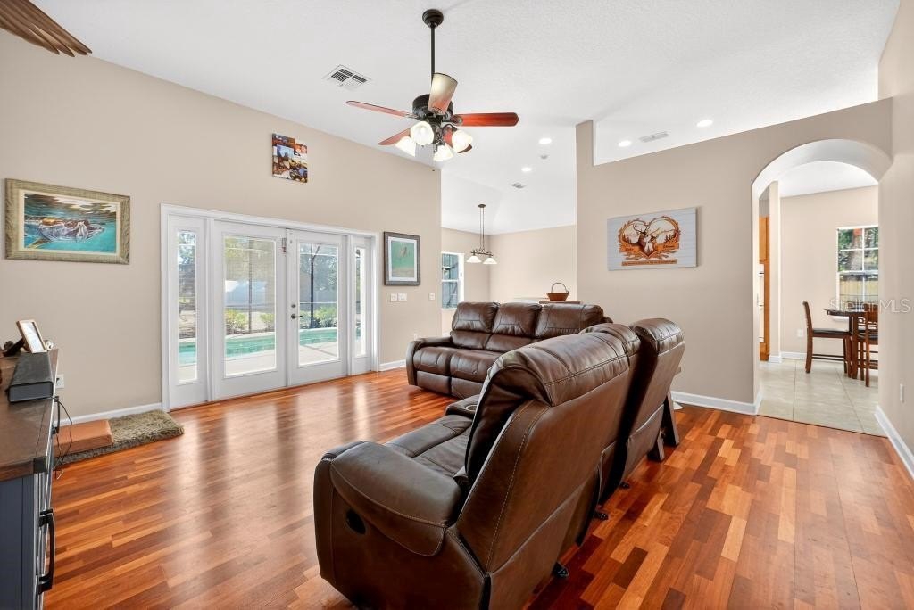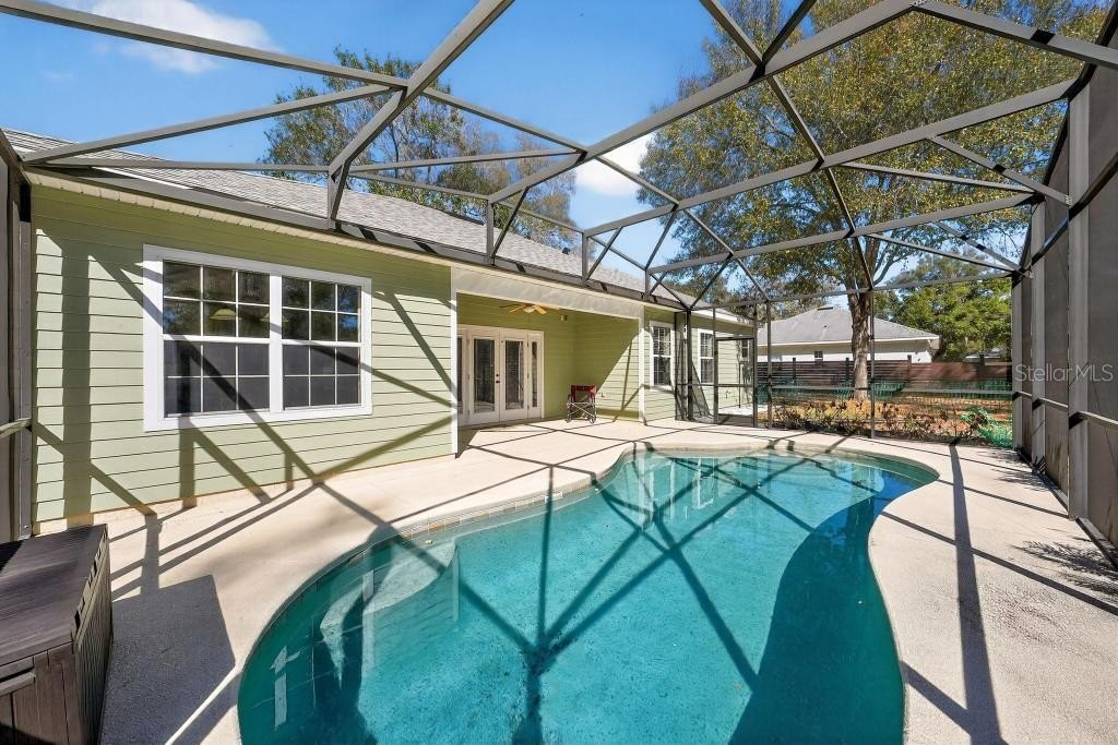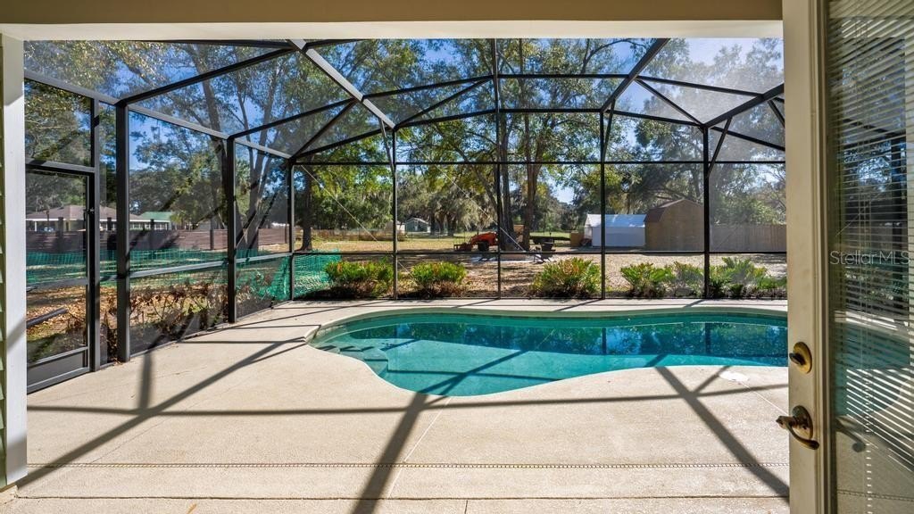 HERE IS YOUR OASIS! 3 Bedroom / 2 Bath POOL HOME on .8 ACRES! Enter this Move-In Ready, well-appointed home through the spacious foyer and immediately notice the Engineered Hardwood Flooring, 11-foot ceilings and seamless flow throughout the home. Living Room opens with French Doors to the Screened in Saltwater Pool for a refreshing morning swim or a relaxing evening beverage on a raft. Kitchen is ready for your inner chef with the Custom Hardwood Cabinets, Double Ovens, Center Island, eat-in space and a Dining Area. You will enjoy how your guests will gravitate to the Casual Dining Counter at all your events! Primary Bedroom offer an En-Suite of rooms including a separated space for a wardrobe area or a cozy, intimate sitting area for you and your family. This Bedroom also has Tray Ceilings and a dedicated 5-piece Bathroom Suite including large Soaking Tub, Double-Sinks, New Walk-In Custom Shower, Private Water Closet and Walk-In Clothes Closet! 2 more bright bedrooms round out the home. Large yard with a fire pit. Extended Concrete Driveway and Parking Area – great spot to park that boat or RV. Shed for the lawn equipment. Indoor, dedicated Laundry Room. Double Car Garage with Electric Door Opener houses AC Handler and Water Heater.