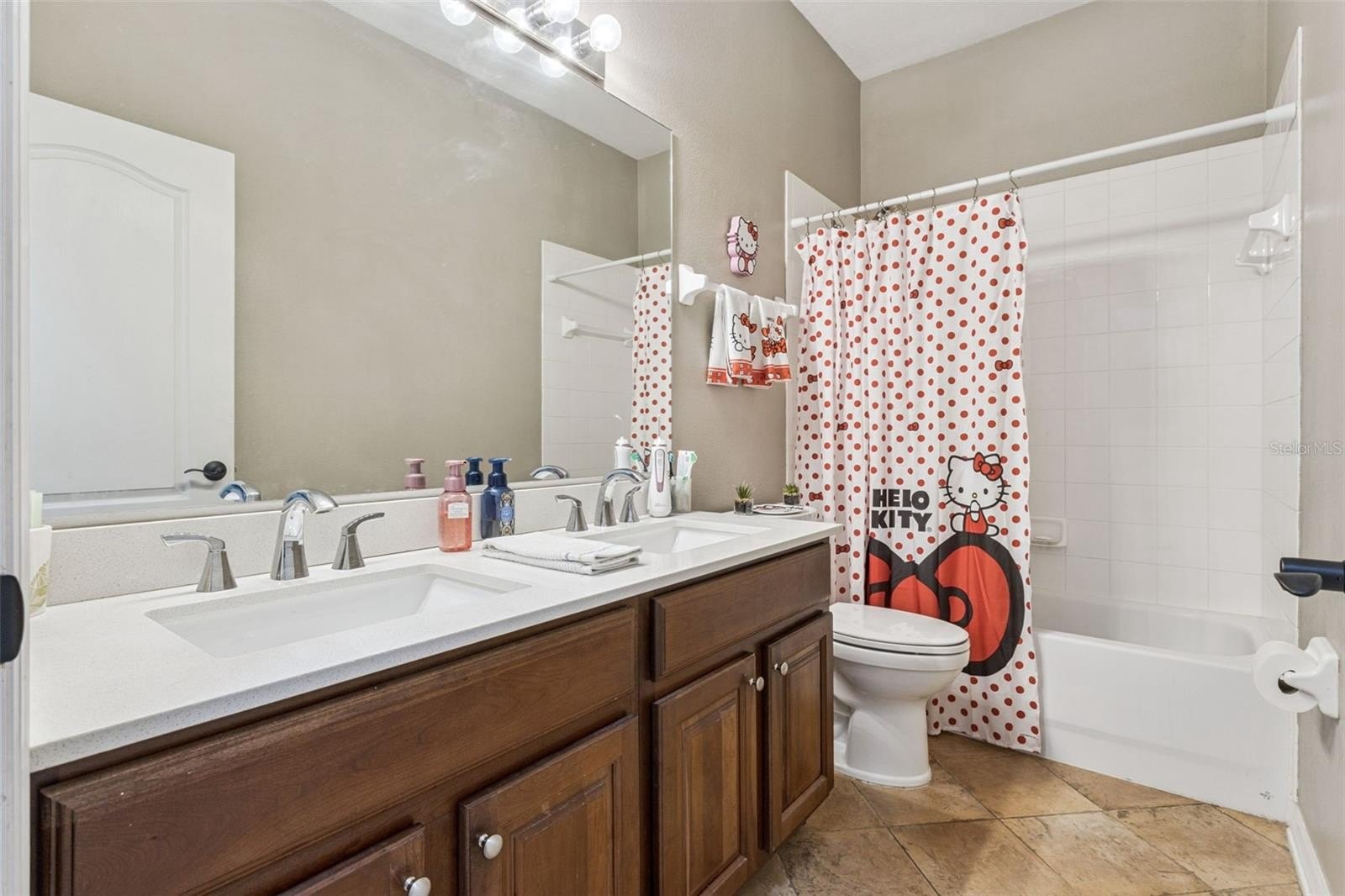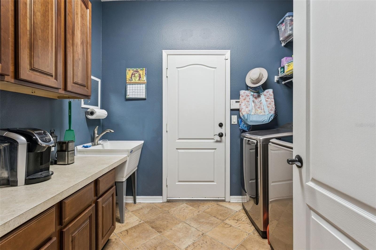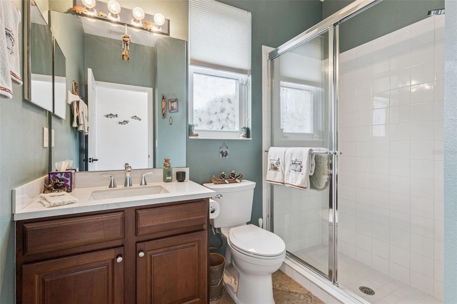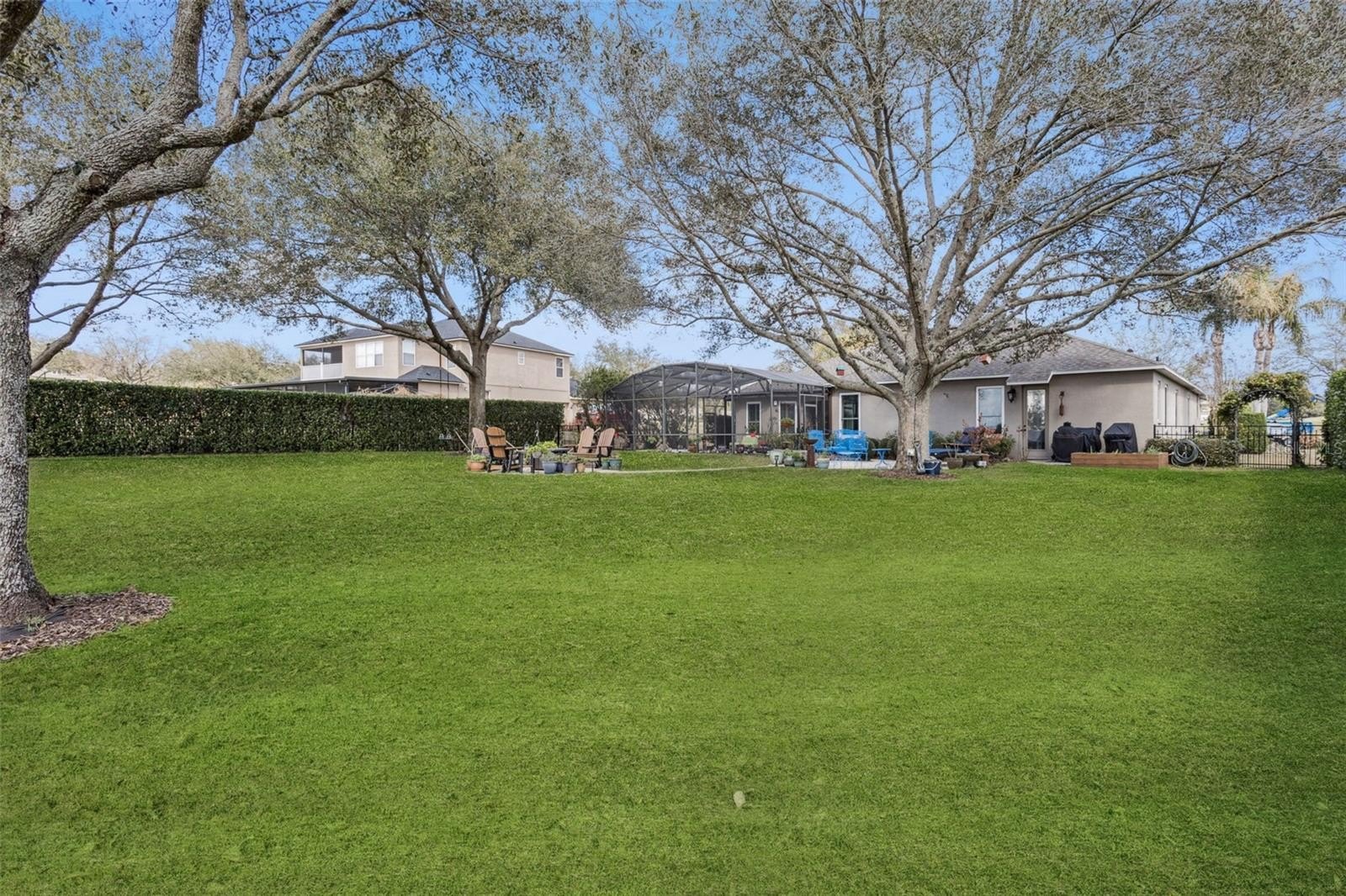 This former model home showcases exceptional quality and thoughtful design at every turn. From the moment you arrive, the paver driveway and walkway set the tone for the elegance found throughout. Double glass entry doors open into a beautifully appointed dining room with arched entryways, a private office featuring glass-paned doors, built-in cabinetry, shelving, and a custom workstation; and a refined living room highlighted by chair rail detailing and decorative millwork. The home flows seamlessly into the spacious family room and gourmet kitchen, complete with solid wood cabinetry, granite counters, a center island, stainless steel appliances, and a generous informal dining area. Ceramic tile flooring runs throughout the main living spaces, while plantation shutters accent most living areas and the primary suite.