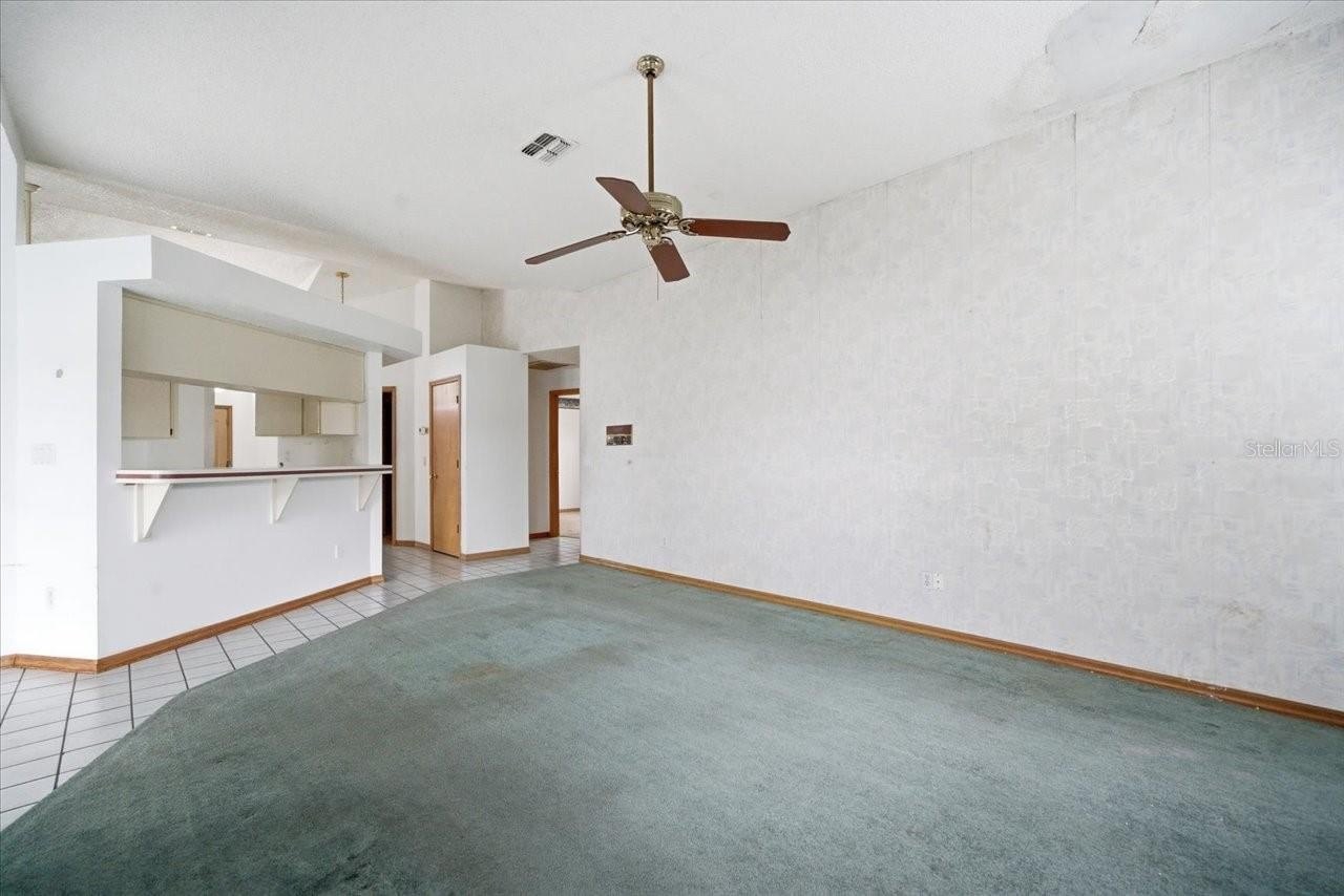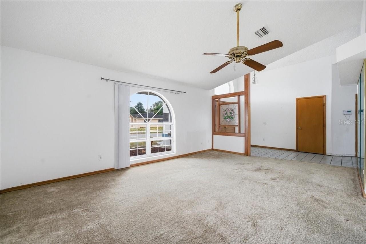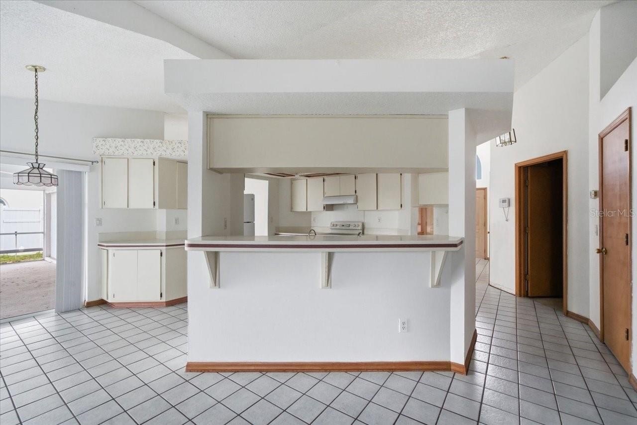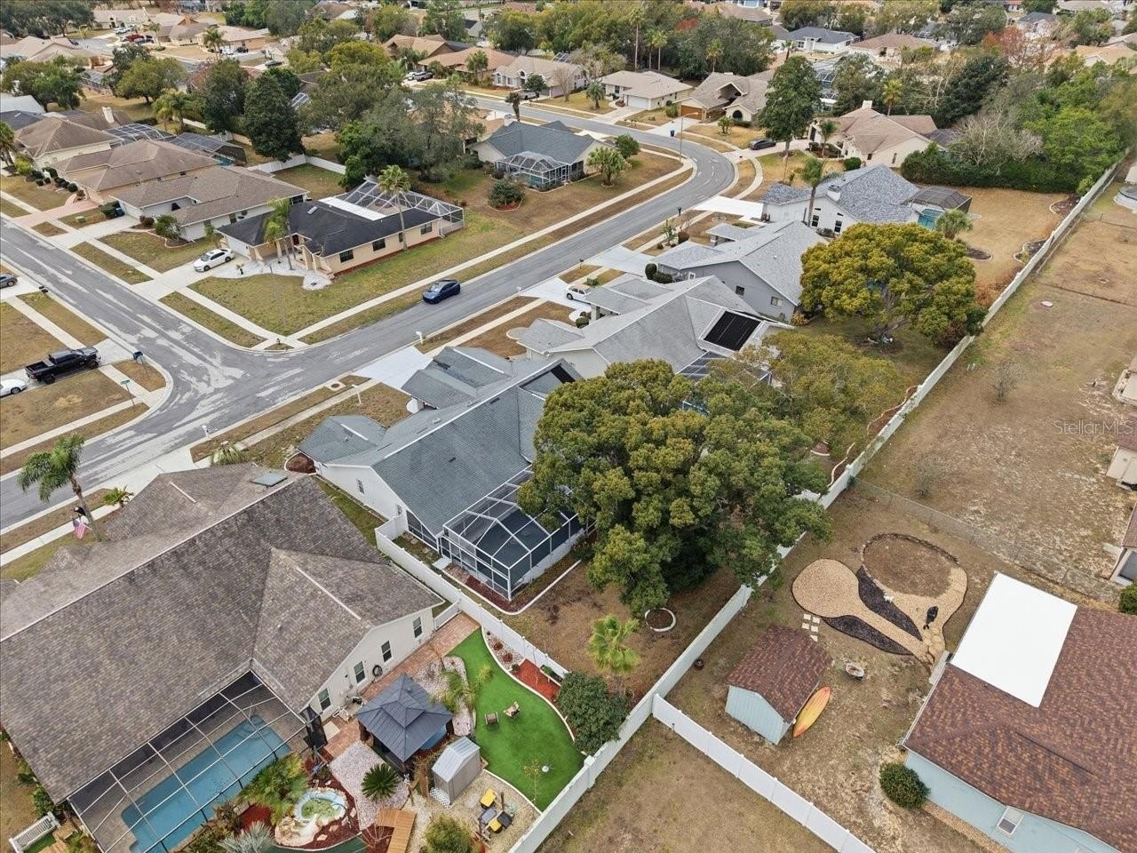 The inviting family room showcases a charming wood-burning fireplace and sliding glass doors that open to a covered lanai, seamlessly blending indoor and outdoor living. Step outside and enjoy your private pool — perfect for relaxing or hosting gatherings year-round.