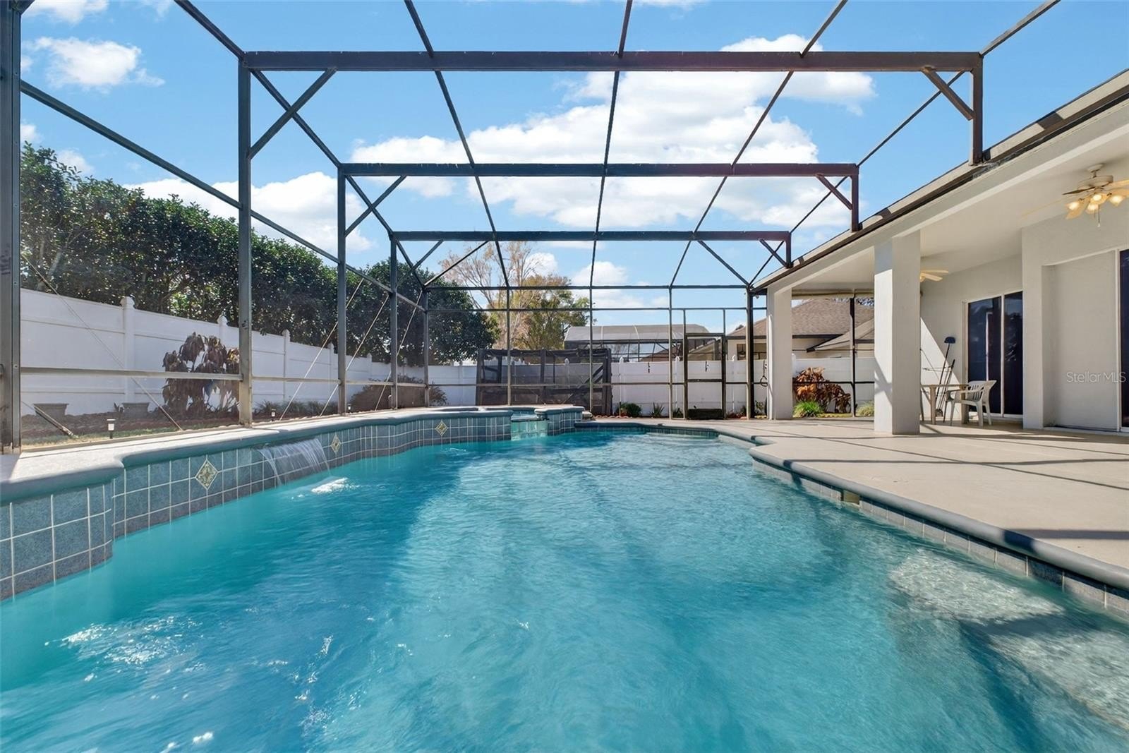waterfall features, and an attached spa—perfect for relaxing or entertaining. Additional