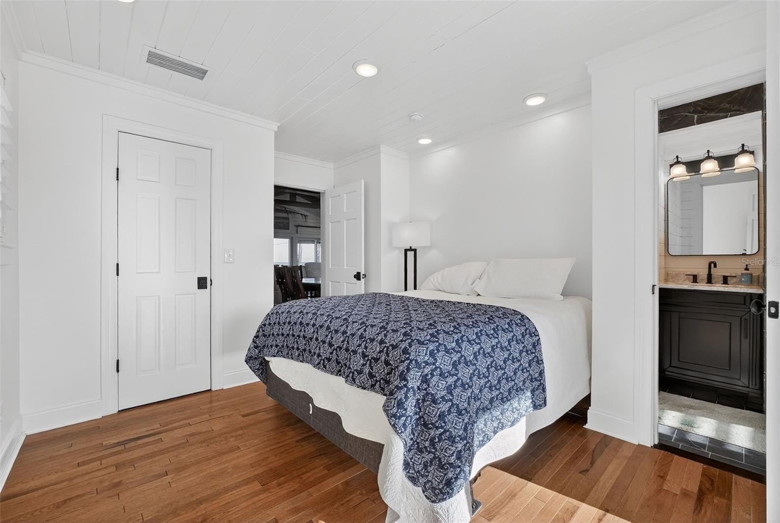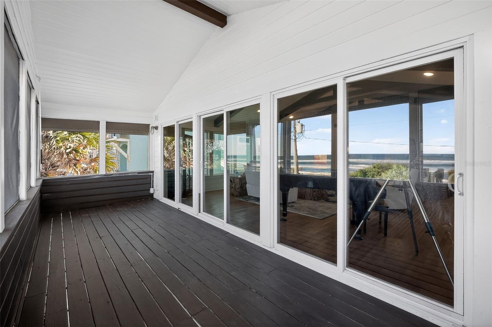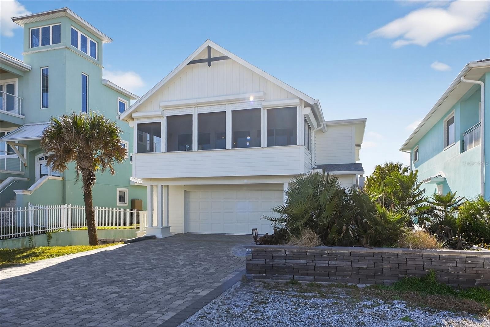 SPECTACULAR OCEAN VIEWS! Private beach. Non-driving shoreline. Own your slice of paradise. This timeless coastal 4-bedroom, 4-bath, 3,600 sq. ft., residence captures panoramic Atlantic views from nearly every room and offers direct access to a quiet stretch of sand just steps away. Privacy and natural beauty define the setting, while the dining, boutiques, and relaxed coastal charm of New Smyrna Beach are only minutes away. The residence has been thoughtfully expanded to maximize living space, incorporating approximately 1,300 square feet of previously non-living area, plus a basement level (approx. 462 sq ft) currently in progress with future potential. Inside, a bright coastal-modern aesthetic unfolds through white shiplap walls, wide-plank hardwood flooring, and soaring vaulted ceilings with exposed beams. The open-concept living area is filled with natural light and flows effortlessly to a private balcony through expansive sliding glass doors, inviting in ocean breezes and uninterrupted views. The kitchen blends contrast and sophistication with rich dark cabinetry, sleek white countertops, a whitewashed brick backsplash, and a full stainless-steel appliance package including gas range, wall oven, built-in microwave, dishwasher, and refrigerator. Bathrooms feature large-format marble-look tiles, matte black fixtures, and contemporary lighting. Bedrooms continue the airy aesthetic with plank ceilings, recessed lighting, balcony access, and a custom walk-in closet system. An oversized epoxy-finished garage offers generous space for vehicles, storage, and beach or water-sport gear.