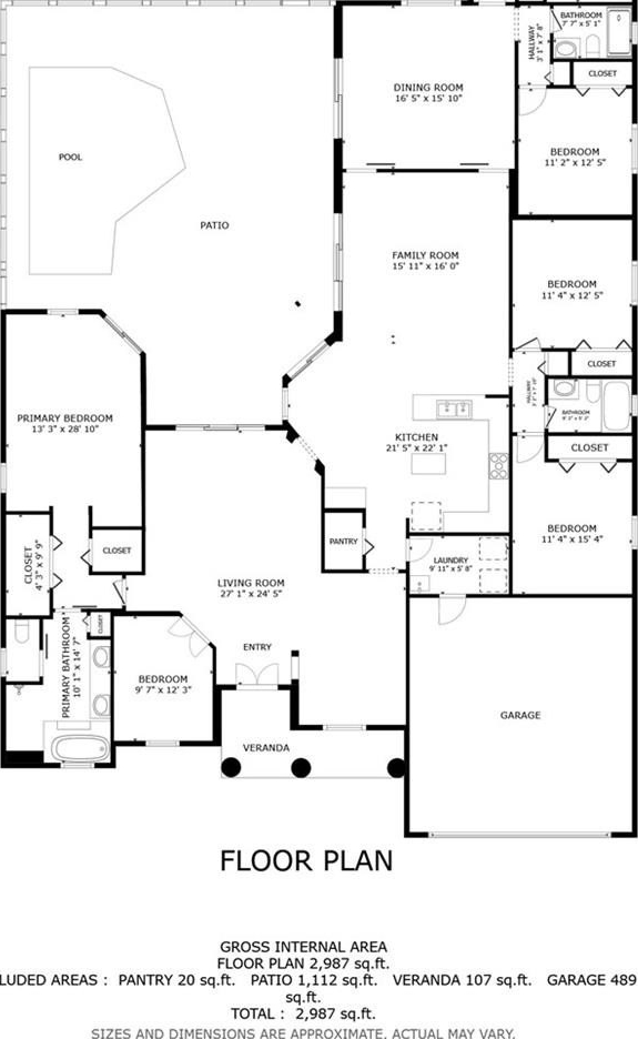 Custom-Built, Single-Story Multigenerational Pool Home on 1.55 Acres in Gated Willow Run (No CDD)