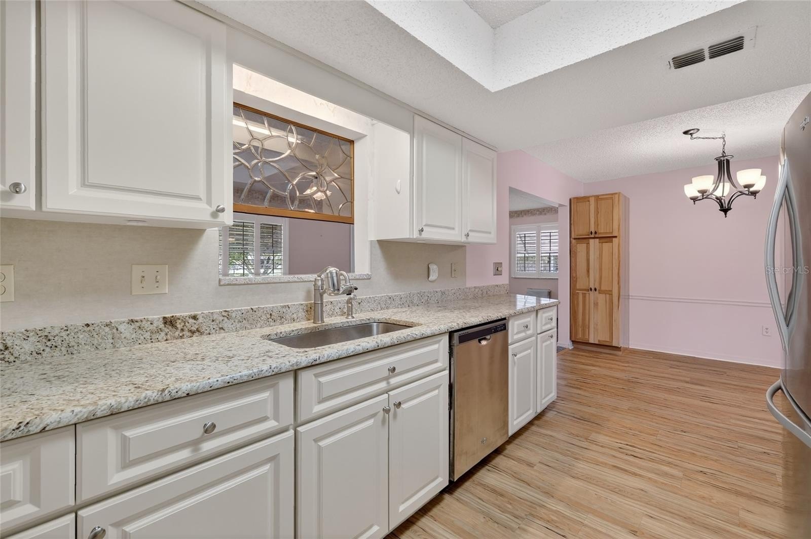 Welcome to your NEW HOME in SPRUCE CREEK SOUTH! This beautiful 2/2 CUSTOM PECAN model has a BRAND NEW ROOF (2026) and is situated on a large CORNER LOT! As you enter the home you will find a Neutral Color Palette , Durable LUXURY VINYL FLOORING in the Kitchen, Living Rm, Dining Rm and Hallway Plus PLANTATION SHUTTERS throughout!! The Kitchen has been updated with GRANITE Countertops and CABINETS with Pull-Outs..Just off the Dining Rm this house boasts a large FLORIDA ROOM. This Space is perfect for Entertaining or Relaxing. The GUEST BATHRM has been updated with a Beautiful New COUNTERTOP/CABINET and LIGHTING.A spacious TWO-CAR GARAGE with an INSULATED DOOR PLUS SCREEN and ATTIC ACCESS .There is also a SEPARATE GOLF CART GARAGE in the BACK of the Garage providing plenty of STORAGE SPACE. OTHER FEATURES INCLUDE: HVAC 2021-Including Ducts and Attic Insulation, HT WT HEATER 2014, FENCED IN BACK YARD,TRANSFERABLE TERMITE TREATMENT PLAN.LIGHTWEIGHT PLASTIC HURRICANE COVERS FOR WINDOWS.Don't miss this opportunity to live in a WONDERFUL 55+ community. Drive your Golf Cart to Restaurants,Golf and Shopping! Call for your appt today!