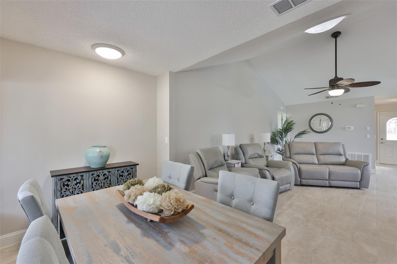 *Click on 3D Tour above* EXCEPTIONALLY maintained, SPARKLING CLEAN, UPDATED, GOLF COURSE VIEW 2 BED/2 BATH home located on ALMOST 1/2 ACRE. 1 year HOME WARRANTY offered for peace of mind. This is an exceptional value and priced to sell! The exterior is fully landscaped with easy to maintain plants and custom accents such as decorative brick pavers on the walk and driveway along with decorative curbing around all landscaping features. The front screened walkway is perfect for morning coffee and offers security for packages delivered. The OPEN FLOOR PLAN leads you right into the home with a stunning VIEW of the outdoors. The interior is BRIGHT and flooded with natural Florida sunshine due to the lovely glass front door, LARGE NEWER windows w/NEW CUSTOM WINDOW TREATMENTS ($4K+) and MULTIPLE, LARGE SOLAR TUBES in the main living areas. The rooms are all good size with positive energy flowing through them. The oversized, open, sparkling clean EAT-IN kitchen offers, NEW QUARTZ COUNTERS, new sink, newer STAINLESS-STEEL appliances (2021), NEW COOKTOP (2025). The home has UPGRADED CONTEMPORARY TILE FLOORING and 5” baseboards throughout the whole house (2020). The owner’s suite has a large SITTING ROOM, BLACKOUT window treatment, walk in closet and UPDATED en-suite bath, with a PRIVATE room for the shower and toilet. The Guest bedroom is large with BLACKOUT window treatments, walk-in closet and can also be a private suite, due to the adjoining UPDATED bathroom. The best part of this home is BEAUTIFUL, ALL SEASON, FLORIDA room. You can open the windows and enjoy the sea breezes when it is cooler or close the windows and enjoy the room whether it is hot or cold outside. There is even a large OPEN-AIR patio, which is perfect for grilling and entertaining, that is connected to the Florida room. Both of these spaces offer STUNNING greenspace VIEWS along with a view of the golf course and water. Due to the orientation of the house, you never have to be concerned with golf balls as golfers tee off of the 4th hole. The OVERSIZED garage offers a FULL WALL CLOSET SYSTEM, pull-down staircase and epoxy flooring. Please check out the attached feature sheet with your agent for more information. Sun City Center is an extremely active 55+ community with over 250 Social and Sports clubs to partake in. Golf carts are used throughout the entire community. Many residents say that this is like an "Adult Summer Camp", so come and enjoy the lifestyle that you deserve, at a price that is phenomenal! Furniture can be purchased under separate bill of sale. Roof – 2014; Electric Panel - 2025; Replumbed; Kitchen Appliances – 2021/2025; 1 year HOME WARRANTY