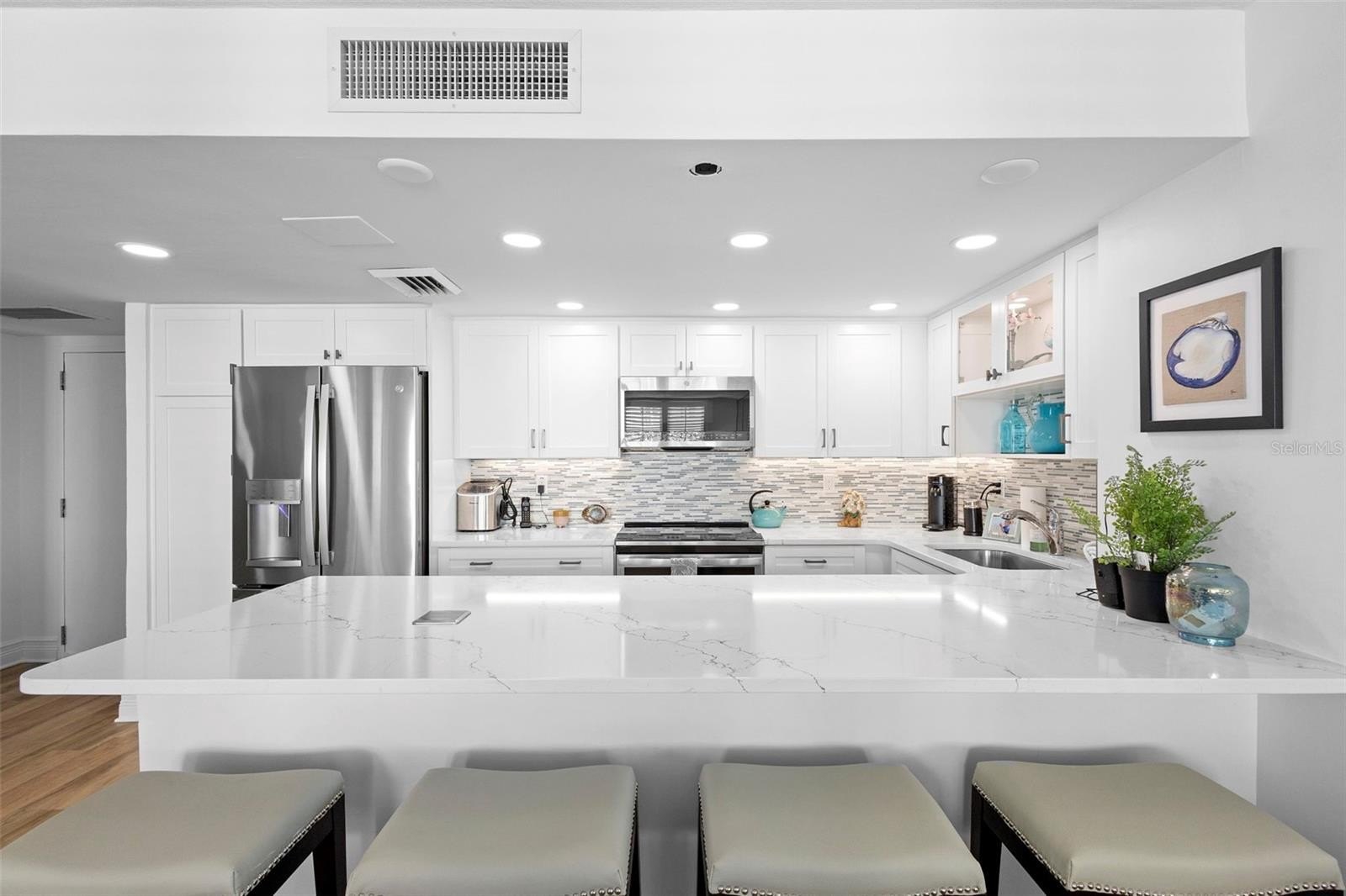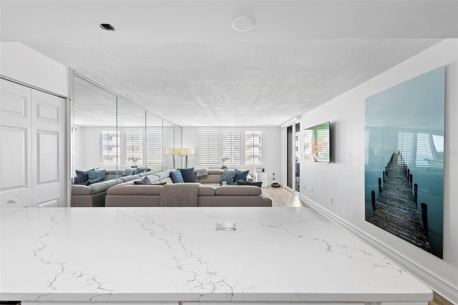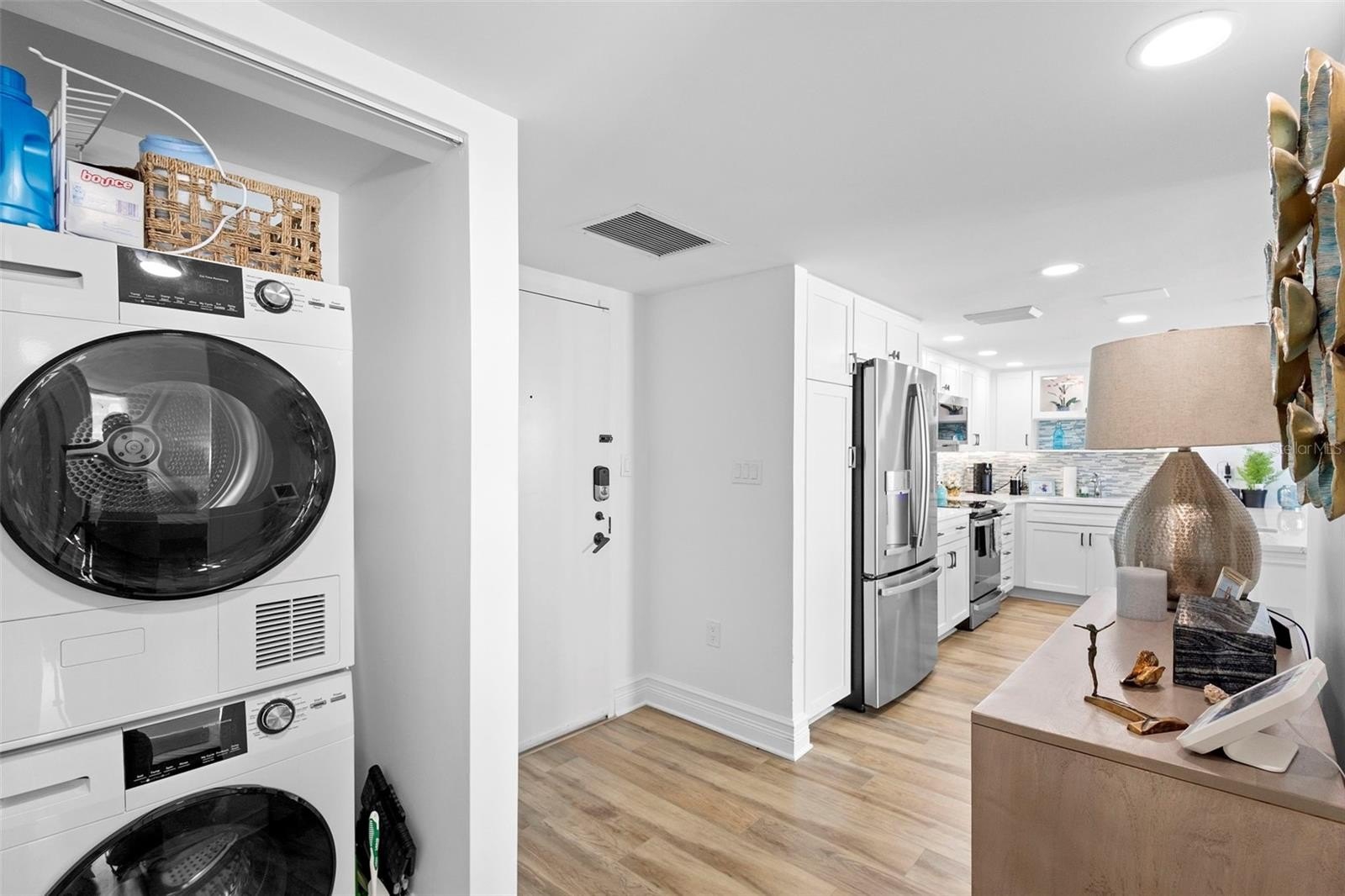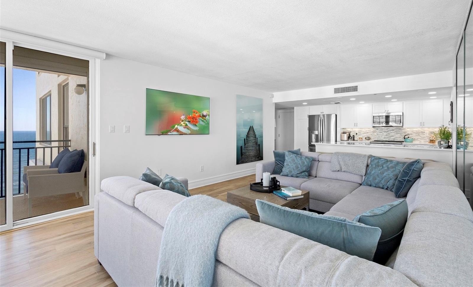 This light-filled residence features an east-facing beach view and west-facing Intracoastal river views, both enjoyed from your private porch/balcony. Inside, the condo has been thoughtfully upgraded with granite countertops, stainless steel appliances, and modern finishes throughout. The indoor laundry area adds everyday convenience, while the open layout creates a relaxed coastal flow.