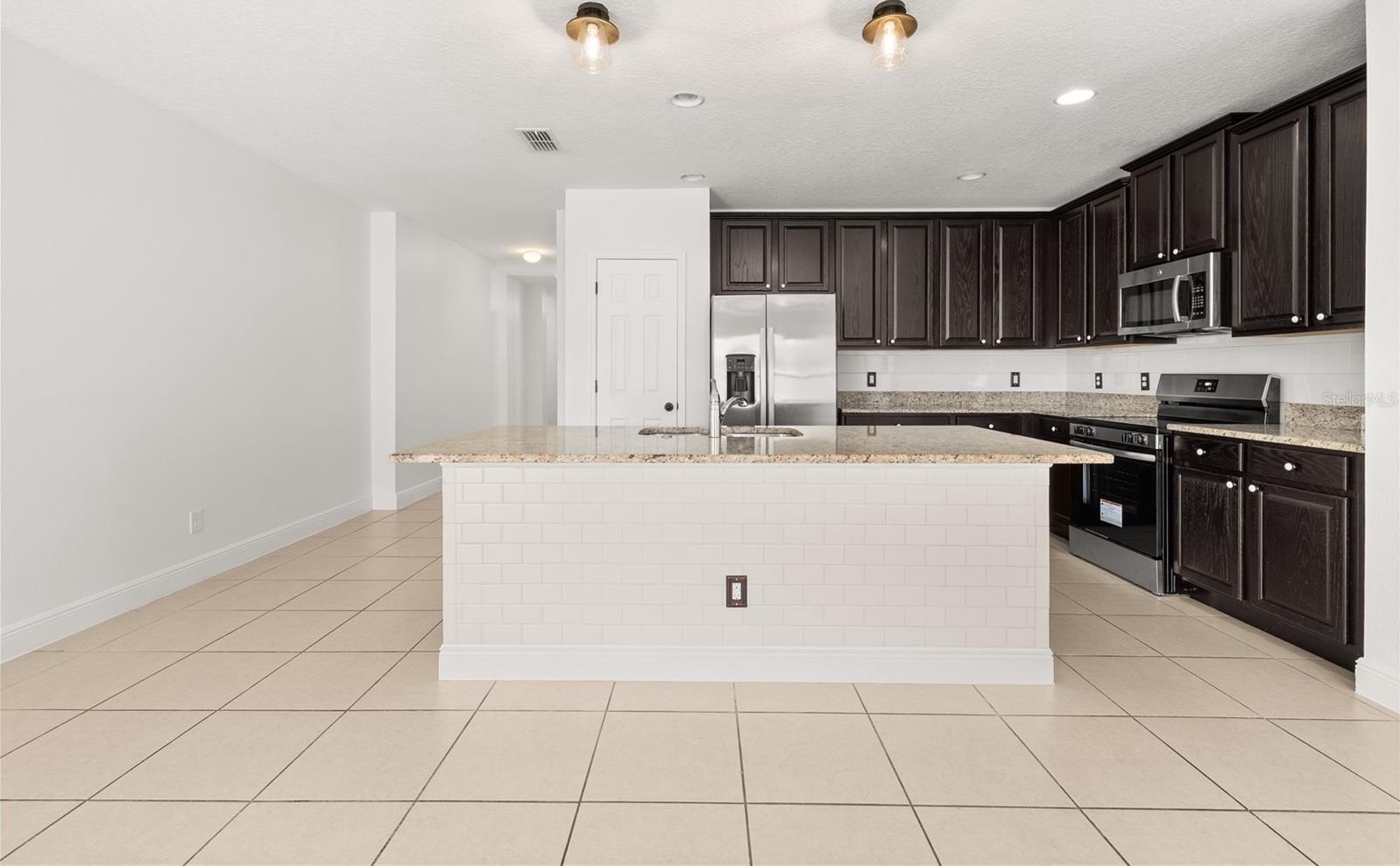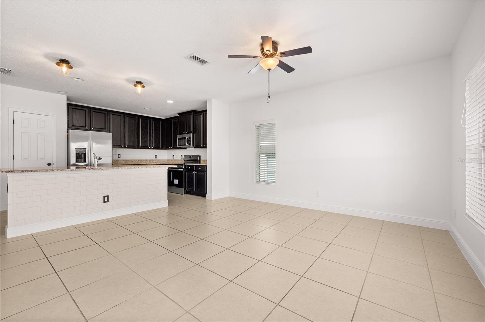 One or more photo(s) has been virtually staged. Welcome to this beautiful 4-bedroom, 2-bath home built in 2017 located in the desirable gated community of Marbella at Davenport. A charming front porch welcomes you into an open-concept floor plan featuring a spacious living area with sliding glass doors leading to the backyard. The well-appointed kitchen offers 42” cabinets with crown molding, granite countertops, stainless steel appliances, closet pantry, breakfast nook, and a large center island perfect for additional seating and entertaining.