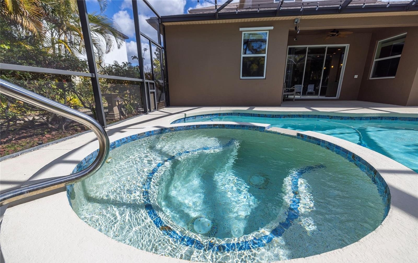 Step outside to your private backyard oasis set on one of the largest lots in the community. Enjoy the saltwater pool and heated spa, lush landscaping, and a charming fire pit—all within a fully fenced yard with a money saving well for irrigation. Multiple indoor rooms and the outdoor patio are equipped with in-ceiling speakers and wired for surround sound for seamless home audio. The area behind the home is common area for the community so you will never have a neighbor directly behind you!