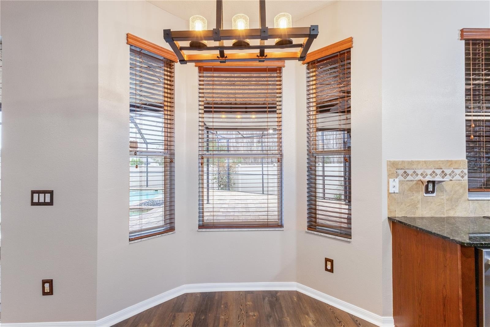Step outside to a covered lanai with pavers, creating an inviting outdoor living space designed for relaxing and entertaining. The fully fenced backyard with a 6-foot privacy fence enhances privacy and creates a more secluded outdoor setting. The saltwater pool and spa are both heated for year-round enjoyment and serve as a true focal point of the home. The pool features a Bluetooth-enabled 2-horsepower pump that can be controlled directly from an app, offering modern convenience at your fingertips. A safety gate surrounds the pool area for added peace of mind, and the mounted outdoor TV conveys with the home, making the space ideal for gatherings and Florida evenings outdoors.