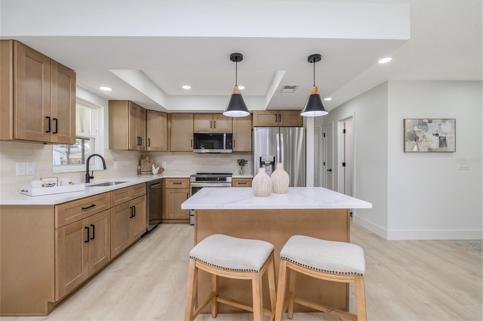 BIG UNVEILING & OPEN HOUSE SATURDAY 2/28 FROM 12pm-4pm. Come see this beautifully renovated home which awaits you. It has been updated with high-end finishes for you. All that's left to do is infuse it with your personal style. This property offers 3 bedrooms, 2 bathrooms, and a spacious open-concept living/dining/kitchen area. The garage is oversized and has room for 2 cars and plenty of storage. A large screened porch provides serene views of the backyard. The renovation includes new appliances, shaker-style cabinets with quartz countertops, 2 newly tiled bathrooms, new AC and water heater, and landscaping, ensuring a worry-free living experience. Brandy Hills Community is a wonderful area of Port Orange with excellent schools, restaurants, medical centers, shopping and only 10 minutes to the Beach. This home will not last long with these beautiful renovations!