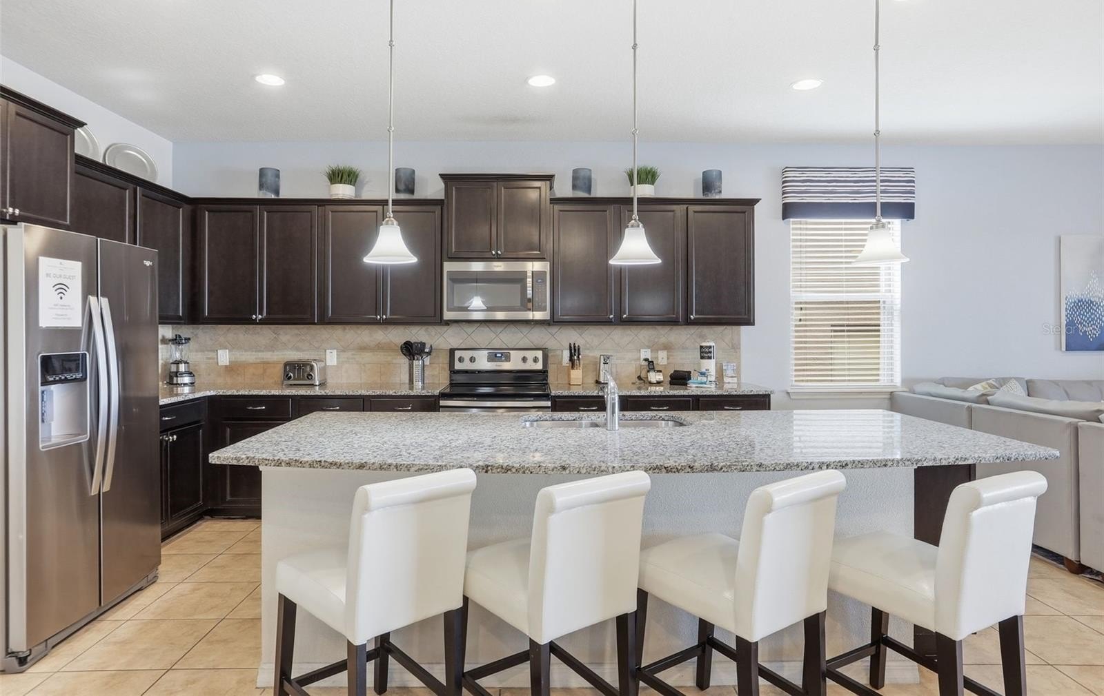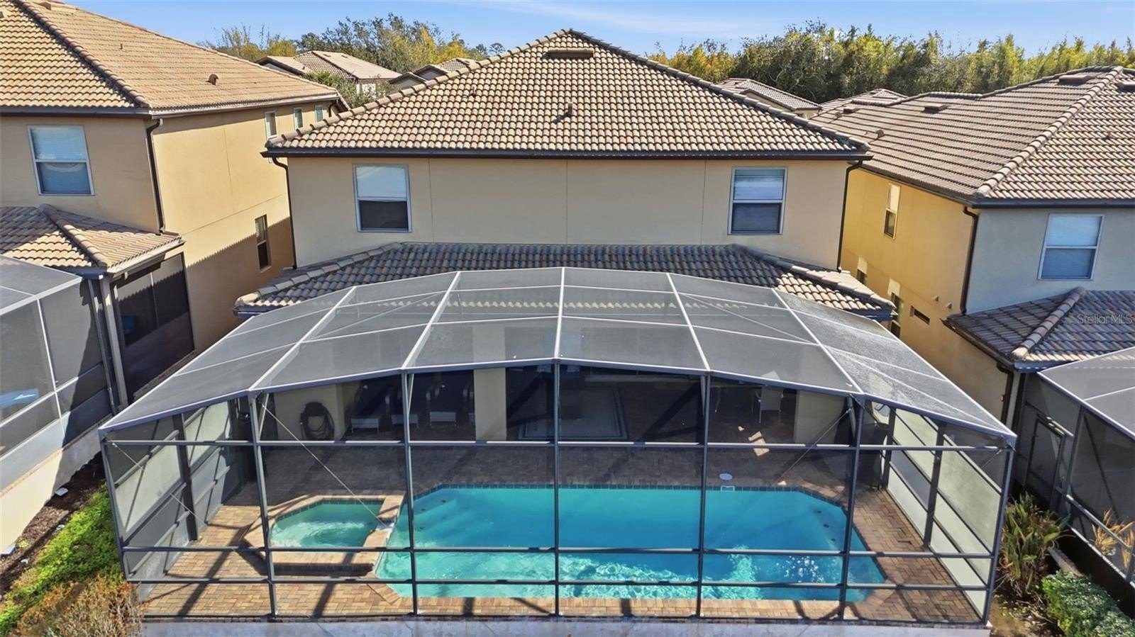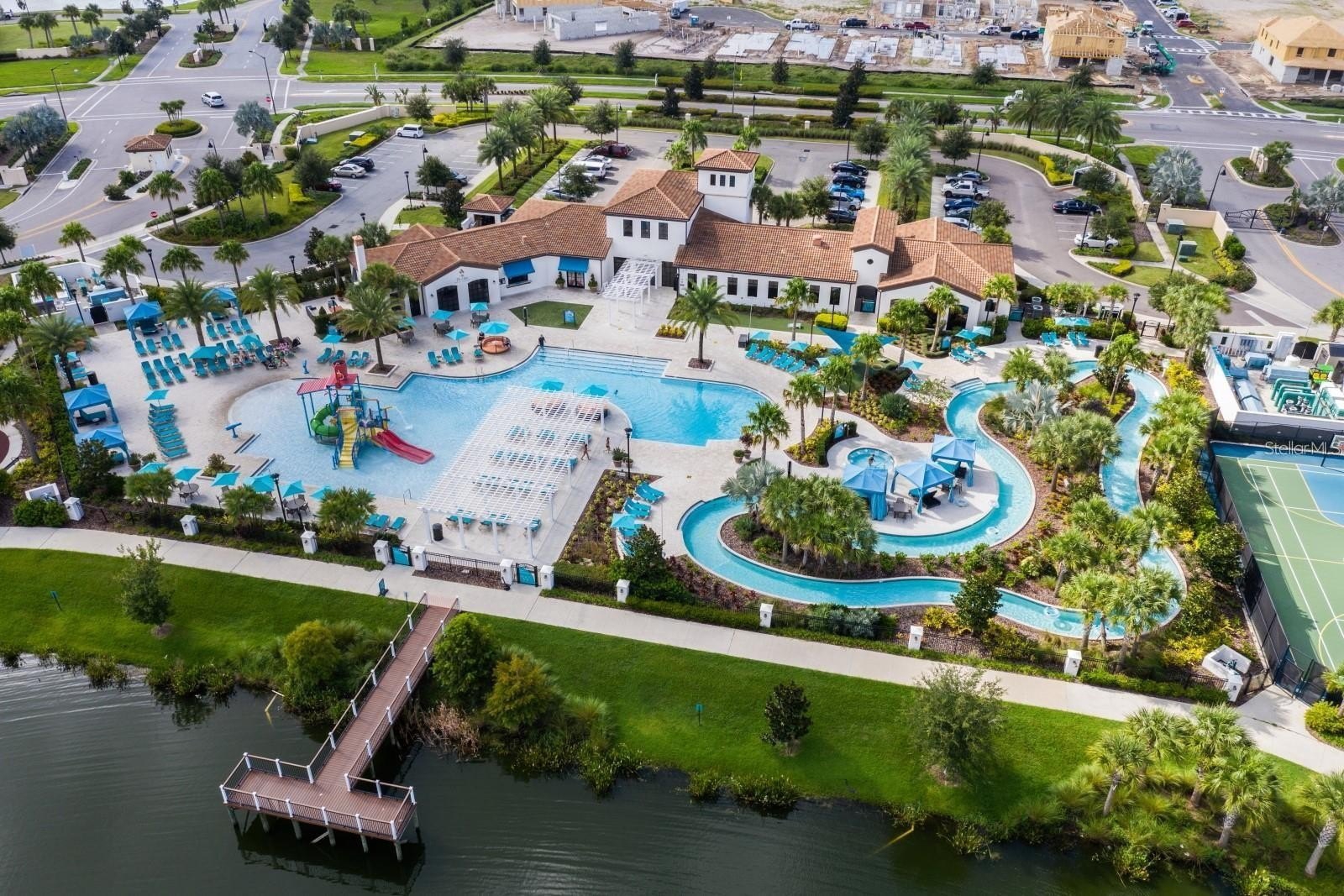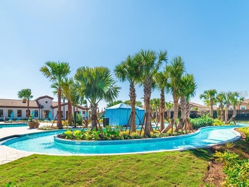 Inside, the expansive open-concept design creates a seamless flow between the kitchen, dining, and main living areas — ideal for entertaining large groups. The oversized upstairs loft provides an additional gathering space perfect for movie nights, gaming, or relaxing after long days at the parks. Constructed in 2017, this residence embodies the Florida resort lifestyle. Step outside to your private heated pool and spa, perfectly positioned to capture sweeping lake views — one of the most sought-after settings within the community. Whether hosting guests or enjoying a quiet sunset, the outdoor space delivers both privacy and a true vacation atmosphere.