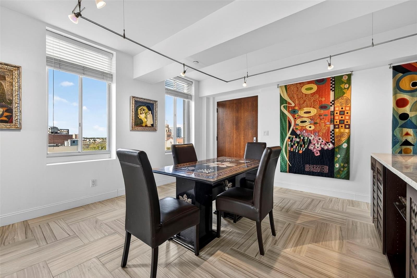 One or more photo(s) has been virtually staged. Step into a masterpiece of living history at the storied Snell Arcade, a crown jewel of Mediterranean Revival architecture and a prominent fixture on the National Register of Historic Places. Situated at the vibrant intersection of Central Avenue and 4th Street, this exclusive 6th-floor residence offers a rare blend of 1920s grandeur and sophisticated urban luxury. The experience begins with the ultimate privacy of a private elevator that opens directly into your personal foyer, revealing a generous 1,325-square-foot sanctuary featuring 2 spacious bedrooms and 2 elegant bathrooms. The interior flows seamlessly through an airy, open-concept layout—perfect for chic entertaining—into a gourmet kitchen outfitted with sleek stainless-steel appliances and the added convenience of an in-unit washer and dryer.