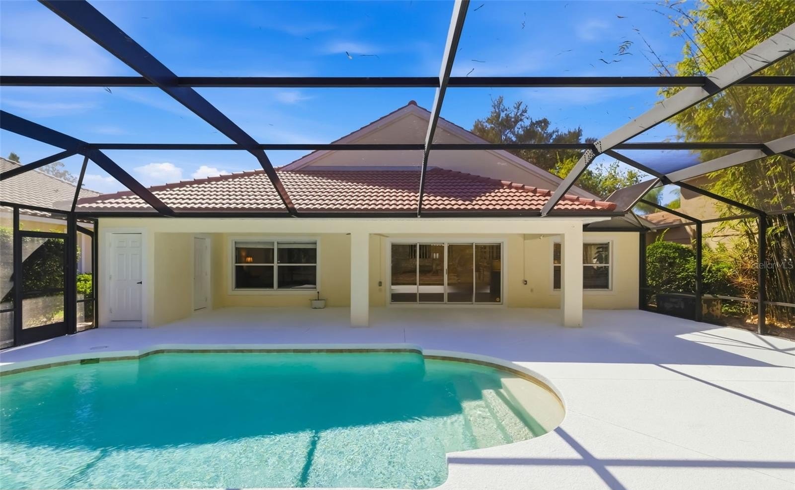 Seamless indoor-outdoor living defines the home’s appeal. The expansive 47x37 screened lanai showcases a heated pool and an impressive 32x10 covered entertaining area, ideal for hosting gatherings or enjoying tranquil evenings. An additional private pool bath adds convenience and sophistication to the outdoor retreat.