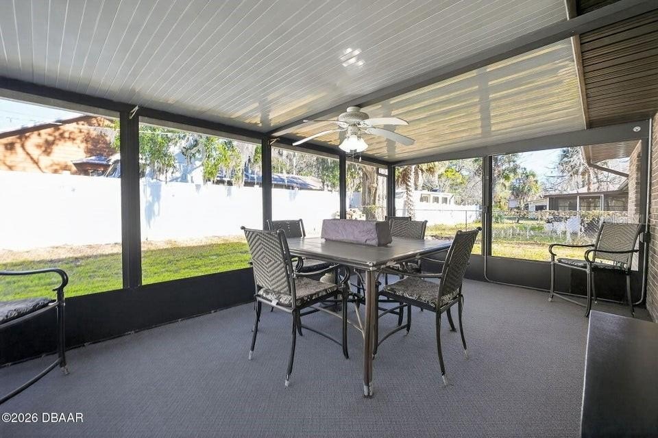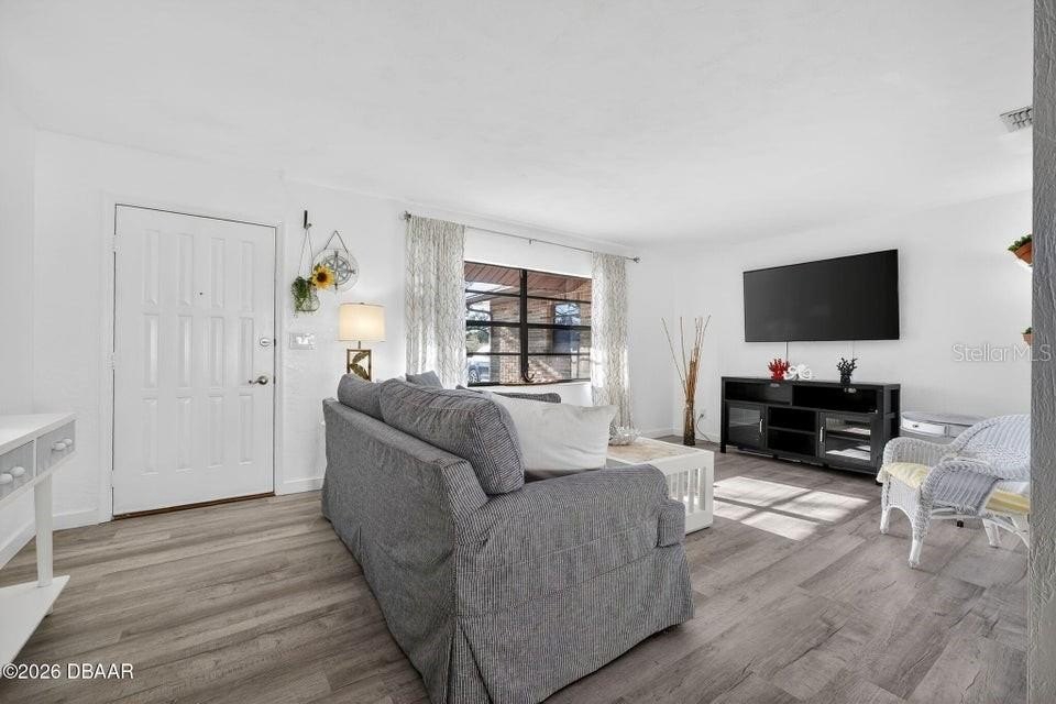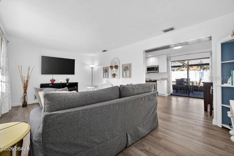 Fully renovated 3 bedroom, 2 bathroom home located in the heart of South Daytona offering a comfortable, functional layout and true move in ready condition. This home features durable vinyl and laminate flooring throughout for a clean, modern look and easy maintenance. The split bedroom floor plan provides added privacy, while the bright kitchen opens to a spacious living area designed for everyday living and entertaining. Step outside to enjoy the screened porch with electricity and windows, creating a flexible indoor outdoor space. The large fenced backyard offers plenty of room to relax or gather around the fire pit for cozy evenings. Major updates include a brand new roof installed February 2026, HVAC system 2020, and water heater 2025, giving buyers peace of mind. Photos were taken prior to the seller moving out to showcase the home furnished. Spend your days at the beach with Daytona and Ormond only 10 miles away, plus New Smyrna Beach's popular dining and wine scene nearby.