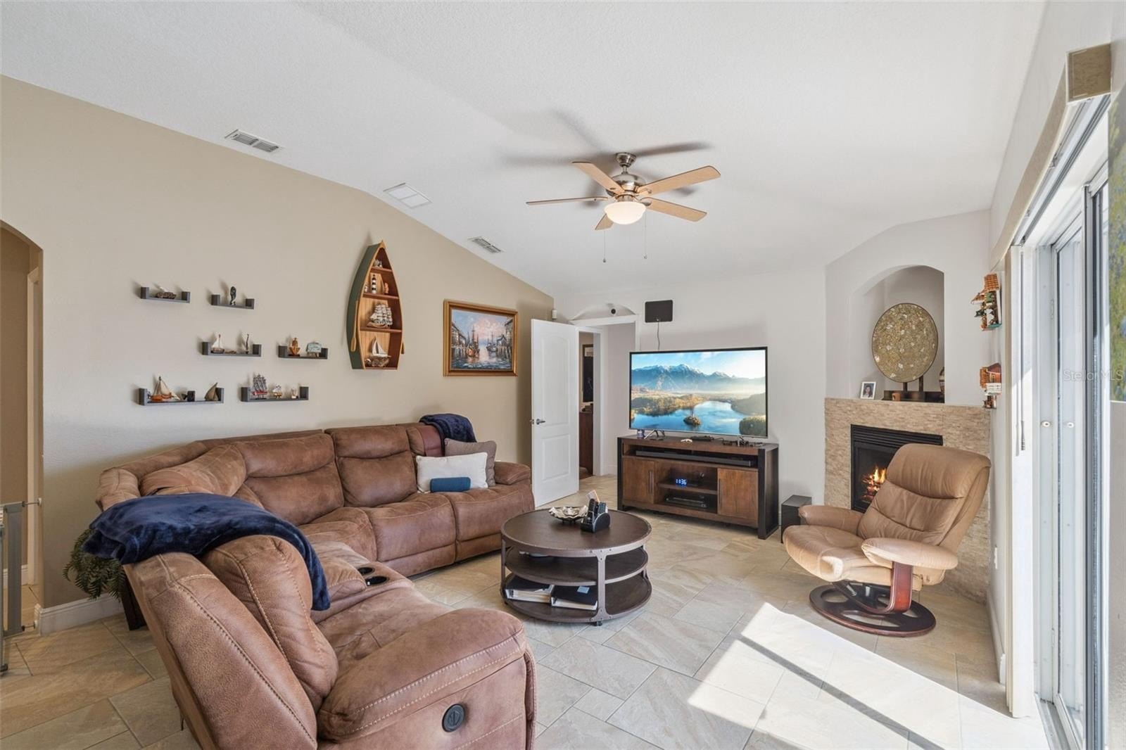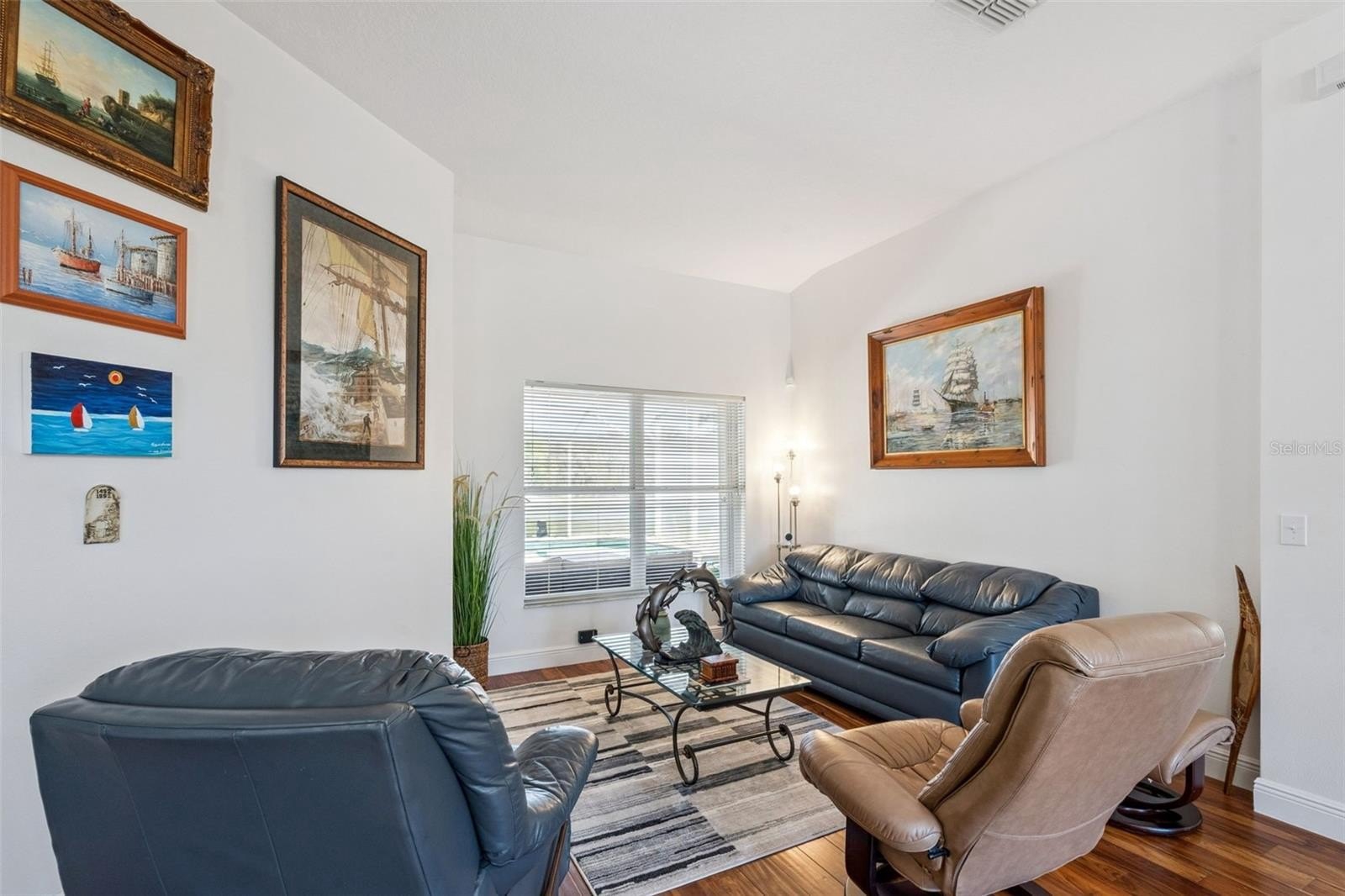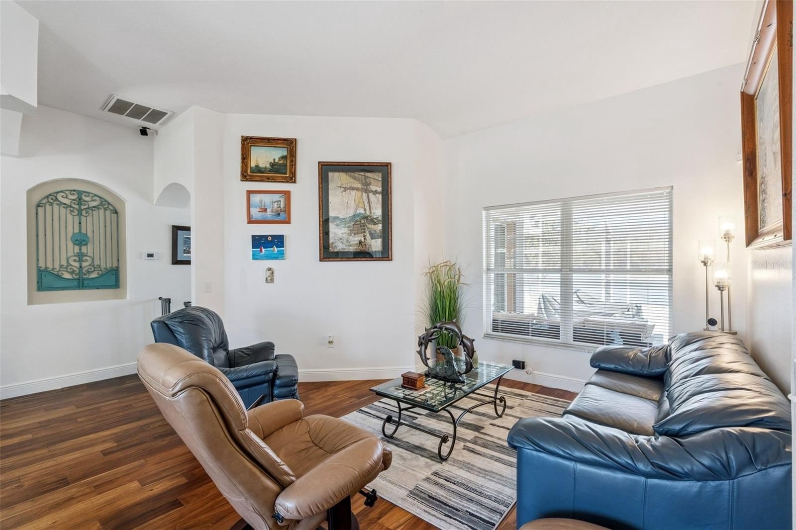 Welcome to this gorgeous one-story home featuring a double door entrance and open floor plan. This well-maintained property captures serene water views from multiple rooms, along with a spacious screened-in lanai overlooking a private pool and beautifully landscaped patio.