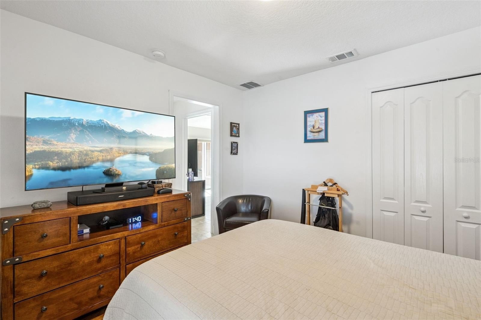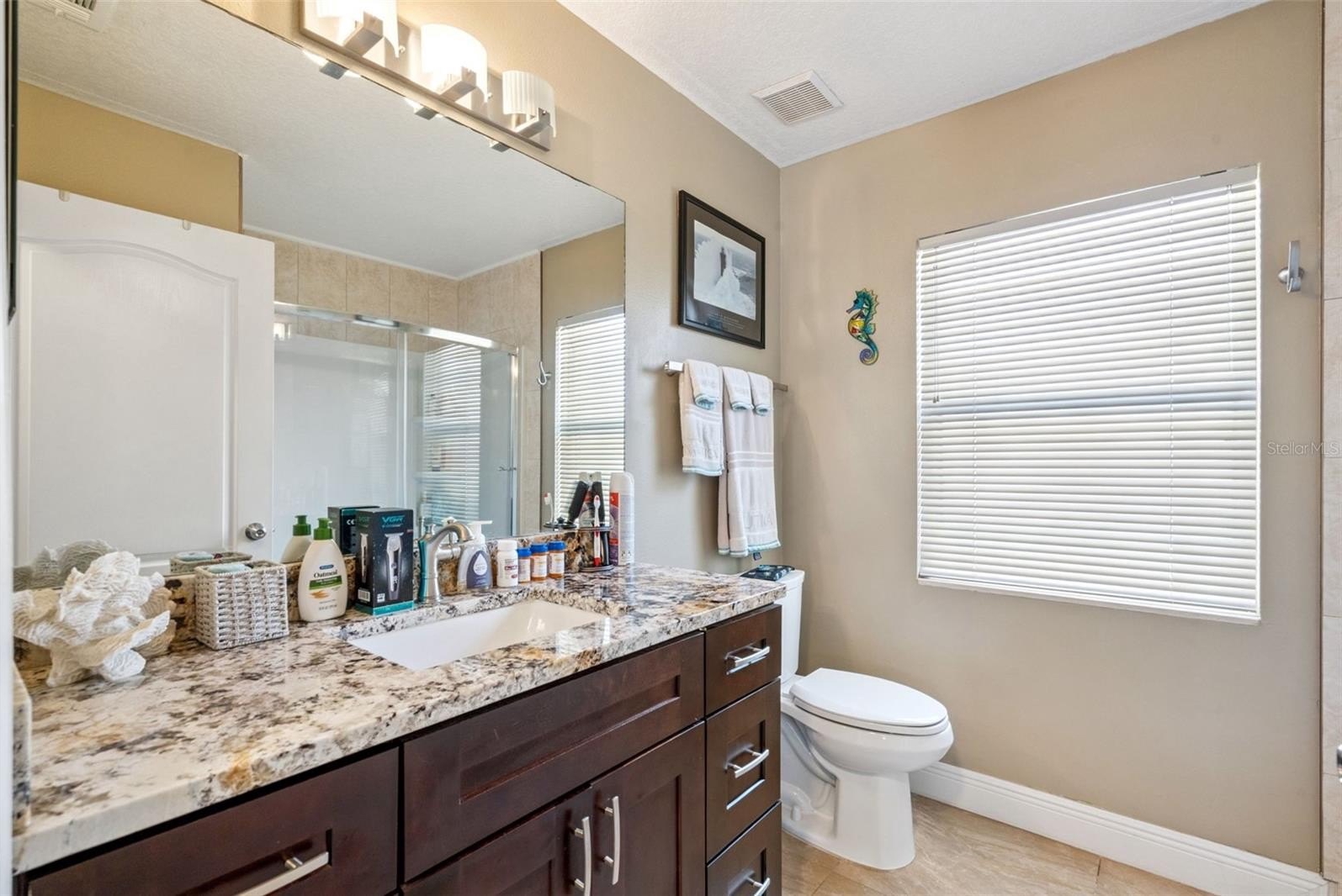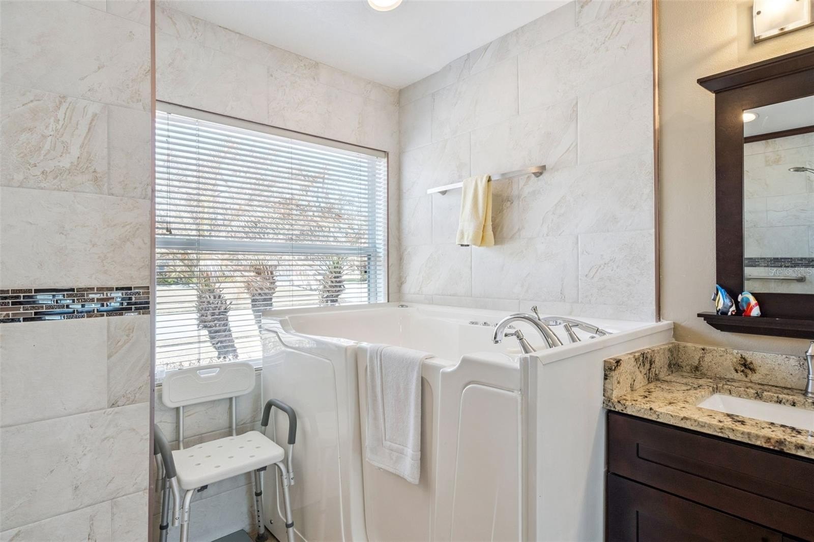 The primary bedroom features double walk-in closets, a sliding glass door, and abundant natural light. The elegant and spacious en-suite includes a double vanity, separate water closet, a modern WALK-IN soaking tub with MASSAGE JETS and aromatherapy—perfect for unwinding after a long day—and an oversized shower with a built-in bench.