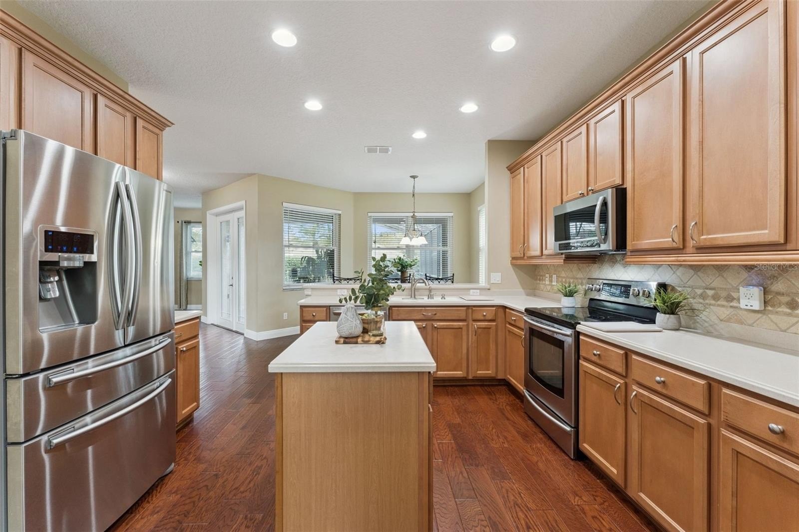 Seller may consider buyer concessions if made in an offer ~ LOCATION! AMENITIES! POOL HOME! UPDATED & WELL MAINTAINED! Welcome to North Shore at Lake Hart, one of Lake Nona’s most sought-after GATED ~ GOLF COMMUNITIES, where space, privacy, and lifestyle come together in this beautifully maintained 5 bedroom, 3 full bath POOL HOME! Perfectly situated at the end of a quiet cul-de-sac on an OVERSIZED .31 ACRE LOT in desirable North Lake Nona — away from busy traffic yet offering incredibly easy access to SR-417 just outside the community. Major updates are already complete, including a NEW ROOF (2022) and HYBRID WATER HEATER along with IMPACT RESISTANT/NOISE CANCELLING/TINTED WINDOWS that enhance energy efficiency, comfort, and peace of mind. Thoughtful upgrades, mature landscaping, and inviting curb appeal set the tone before you even step inside. Designed for both everyday living and entertaining, this spacious layout offers formal and casual living spaces, highlighted by wood, wood laminate, and tile flooring throughout, elegant crown molding, and charming arched windows that fill the formal areas with natural light. A flexible MAIN FLOOR BEDROOM and FULL BATH provide the perfect setup for guests, multi-generational living, or a private home office. At the heart of the home, the well-appointed kitchen is ready for gatherings large and small, featuring ample cabinetry and counter space, a center prep ISLAND, breakfast bar seating, tiled backsplash, STAINLESS STEEL APPLIANCES, recessed lighting, and seamless flow into the casual dining area and family room beyond. FRENCH DOORS open to the COVERED LANAI, creating effortless INDOOR/OUTDOOR LIVING. Step outside and into your private backyard retreat ~ a true standout feature ~ with a sprawling yard, mature trees for added privacy, and a SCREENED SALTWATER POOL with an extra-deep design and 8-person spa. The covered lanai overlooks a thoughtfully designed outdoor space ideal for relaxing, entertaining, or simply enjoying Florida living year-round. A storage shed, overhead garage storage, and additional under-stair storage ensure there’s room for everything. The 3-car garage, abundant interior storage, and generous lot size offer flexibility and room to grow rarely found in Lake Nona communities. Residents of North Shore at Lake Hart enjoy a LOW HOA and NO CDD along with exceptional AMENITIES including a gated entrance, community pool, fitness center, playground, sports courts, golf course access, golf-cart-friendly streets, and a scenic LAKEFRONT DOCK and fishing pier on beautiful Lake Hart! Zoned for “A-RATED” SCHOOLS and ideally located near Medical City, shopping, dining, major highways, the Orlando International Airport, and world-class attractions, this home delivers the perfect balance of peaceful neighborhood living and everyday convenience. This is the pool home you have been waiting for - call today to schedule a tour!