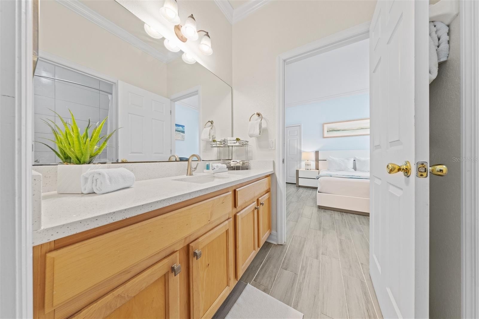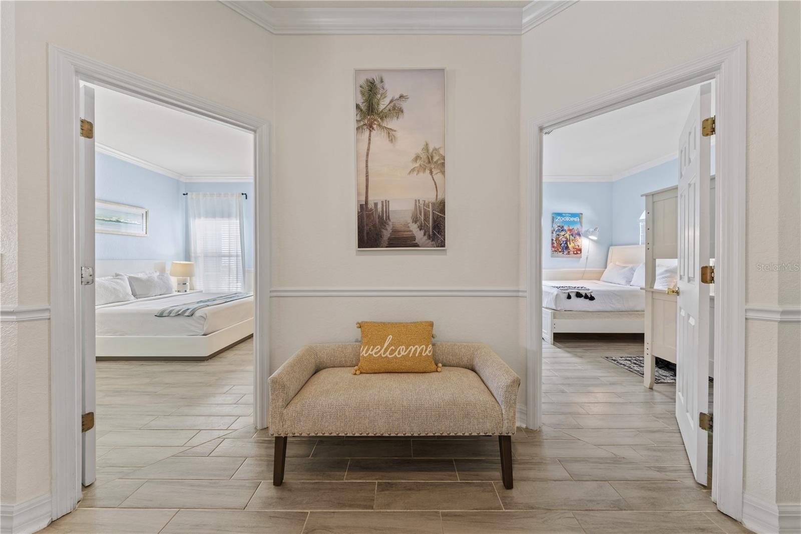 This beautifully maintained home was newly remodeled a few years ago and features tile flooring throughout and high ceilings, creating a spacious and open feel. The well-designed split bedroom floor plan offers two primary suites and a Jack-and-Jill bathroom for the secondary bedrooms—ideal for families, guests, or rental use.