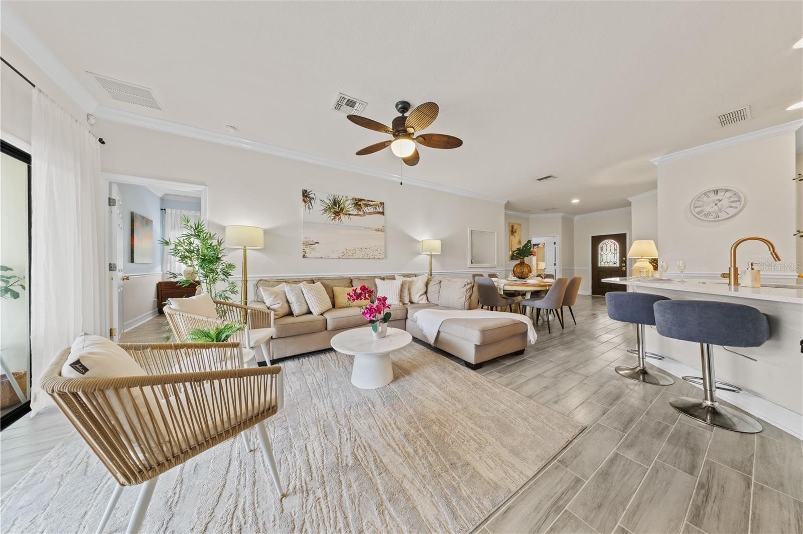 The community offers outstanding resort-style amenities, including a playground, heated community pool, clubhouse, fitness center, lounge area, golf club rentals, and an arcade. The HOA includes lawn and yard maintenance, pest control, and trash pickup twice weekly, offering truly low-maintenance ownership.