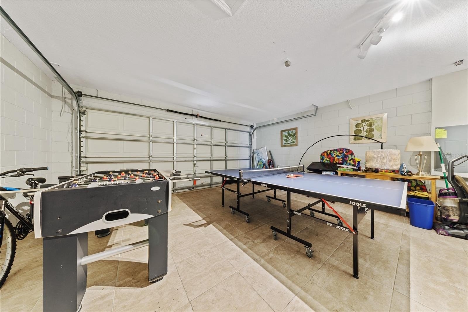 The kitchen is equipped with stainless steel appliances, and the home is tastefully decorated throughout. Recent upgrades include a new A/C unit, new pool pump and pool heater, newer washer and dryer, and a newly built game room in the garage with tile flooring, providing added entertainment value.