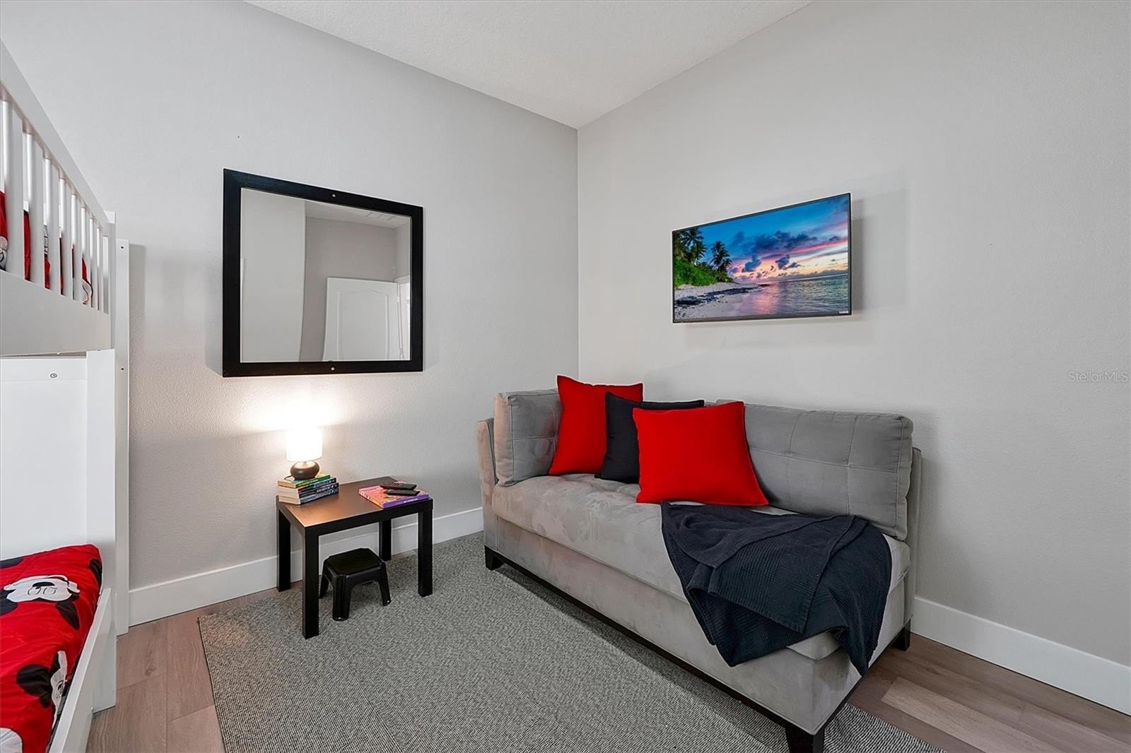 Welcome to this stunning 5-bedroom, 4-bathroom townhome in the highly desirable Paradise Palms Resort in Kissimmee, just minutes from Disney and Orlando’s top attractions. This beautifully updated home features a modern open-concept layout with sleek, contemporary flooring throughout the main living areas and a fully equipped kitchen boasting granite countertops, stainless steel appliances, and a breakfast bar perfect for casual dining or entertaining. The home is fully furnished and thoughtfully designed with two spacious primary suites, one on each level, offering privacy and flexibility for guests or extended family. Each bedroom is tastefully decorated with a clean, modern aesthetic and ample storage. Step outside to your private screened-in lanai with a heated splash pool, ideal for relaxing after a day at the parks or enjoying Florida’s year-round sunshine. Located in the gated Paradise Palms Resort, residents and guests enjoy access to world-class amenities including a resort-style pool, spa, fitness center, movie theater, tennis courts, arcade, and clubhouse with concierge services. Whether you're looking for a vacation rental investment, a second home, or a primary residence, this townhome offers the perfect blend of modern comfort, style, and unbeatable location.