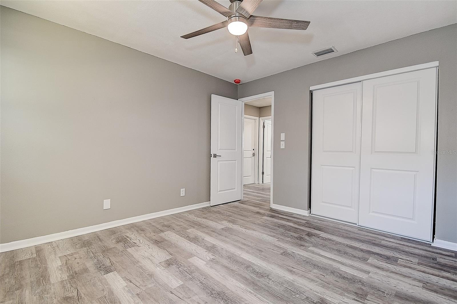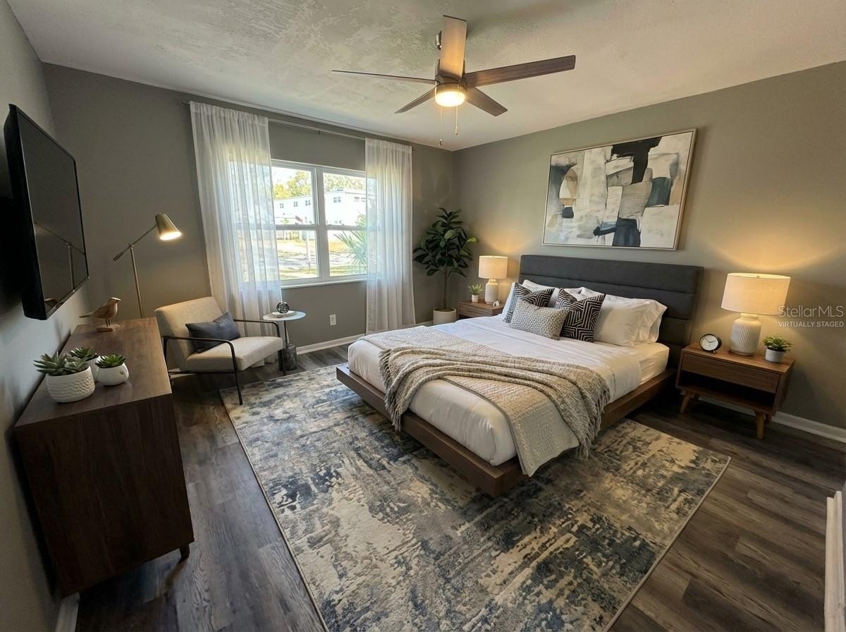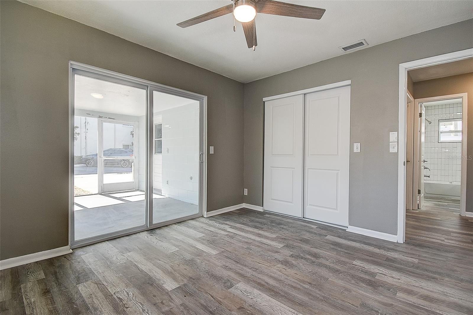 Welcome home to this beautifully renovated 3 bedroom, 2 bathroom block construction residence that has been completely updated from top to bottom! This move-in ready home features a brand new roof, fresh paint inside and out, and all new impact-rated white vinyl windows for maximum energy efficiency and peace of mind. Step inside to discover an open and inviting floorplan with luxury vinyl plank flooring flowing throughout the entire home. The stunning designer kitchen is the true centerpiece, boasting light grey shaker cabinets, stainless steel appliances, a large island with granite countertops, and a custom blue subway tile backsplash that adds the perfect pop of color and style. Both bathrooms have been fully updated with new subway tile showers, modern vanities, and designer lighting fixtures. Ceiling fans are installed in every room for added comfort.