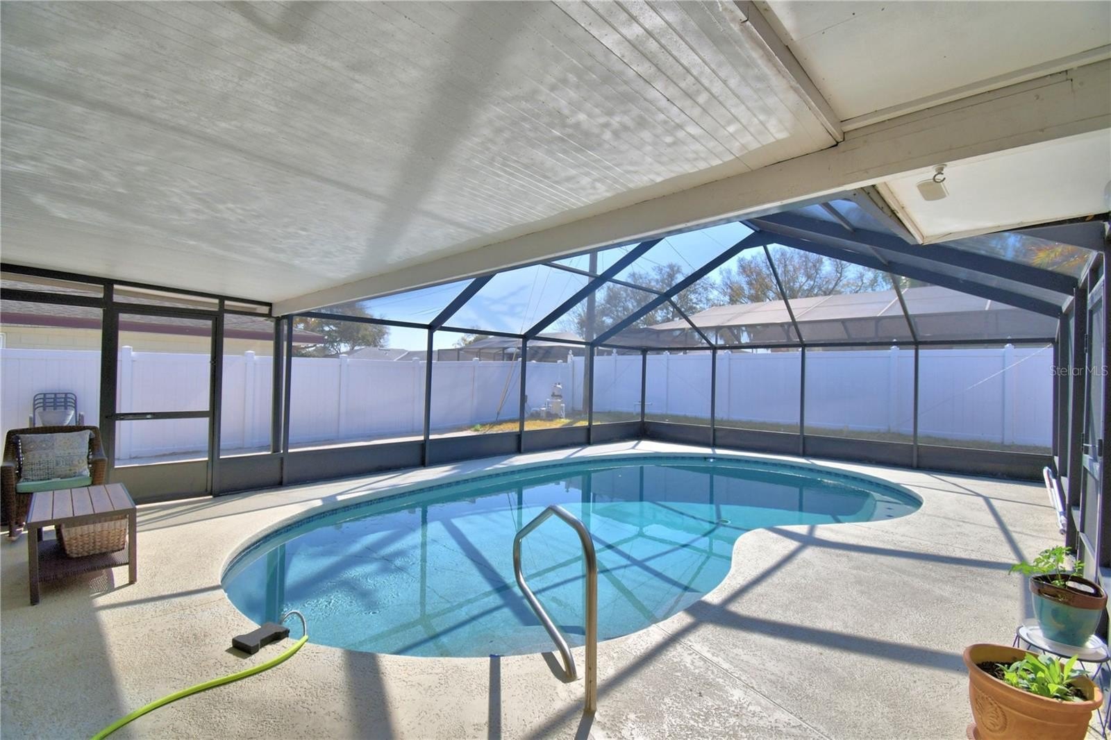 Designed for true Florida living, you step directly from the home onto a screened porch that opens to your private pool and fenced backyard—creating a seamless indoor-outdoor setting ideal for relaxing or entertaining. The outdoor space offers both privacy and comfort, making it a standout feature of the property.