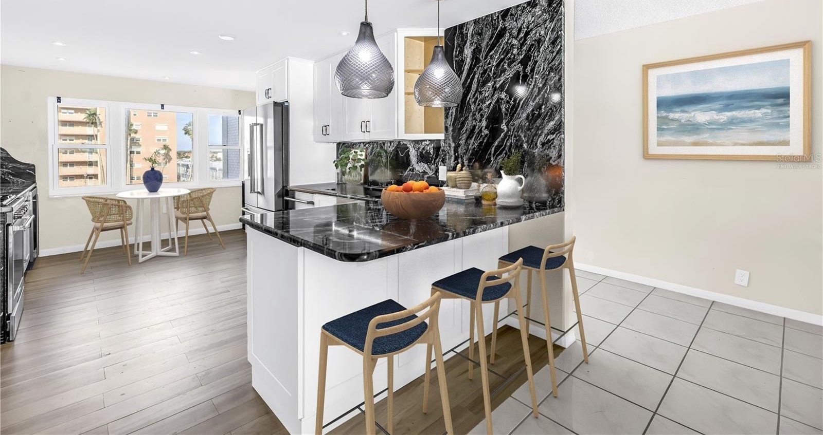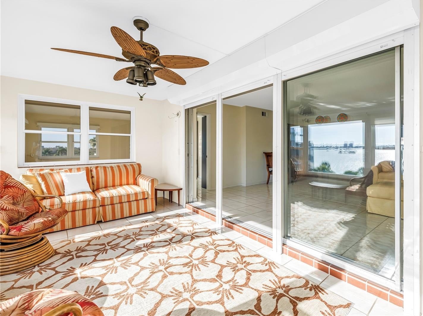 Welcome to the largest floor plan available in this premier 55+ waterfront community in South Pasadena. This beautifully remodeled three-bedroom, two-and-a-half-bath residence offers spacious interiors, modern upgrades, and breathtaking views of Boca Ciega Bay. From the moment you step inside, you’ll appreciate the extensive updates and light-filled spaces. The stunning, fully renovated kitchen is a true showpiece, featuring sleek white cabinetry, dramatic full-height stone backsplash, stainless steel appliances, a wine refrigerator, reverse osmosis system, pantry with pull-out drawers, and a spacious peninsula perfect for entertaining. Designer pendant lighting and ample counter space make this kitchen as functional as it is elegant. The expansive living areas flow seamlessly into the enclosed Florida room, where walls of impact windows frame sparkling open-water views. Enjoy morning coffee or evening sunsets overlooking Boca Ciega Bay from the Florida room, living room, and one of the bedrooms. The entire unit is outfitted with impact windows, offering peace of mind and quiet comfort. The generous primary suite and additional bedrooms (one serving as a 2nd primary suite) provide flexibility for guests, a home office, or hobby space, while the updated finishes throughout create a cohesive, move-in-ready feel. Residents enjoy resort-style amenities including two heated pools, shuffleboard courts, clubhouse (with exercise room, pool table and library), fishing dock, patio area with tables and BBQ grills — all set along the bay. Ideally located, you’re just minutes to the Gulf beaches, a quick drive to vibrant downtown St. Petersburg, waterfront dining, shopping, and easy access to major roadways. This is an exceptional opportunity to enjoy spacious, updated waterfront living in one of South Pasadena’s most desirable communities.