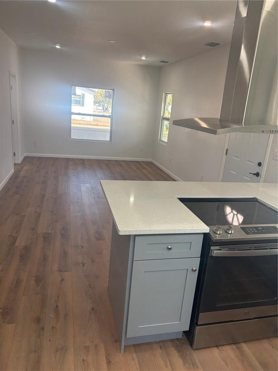 Step onto the inviting covered front porch and into a bright, open interior featuring wide-plank flooring, fresh neutral tones, and an airy layout perfect for everyday living and entertaining. The stunning kitchen serves as the heart of the home with sleek quartz countertops, shaker-style cabinetry, stainless steel appliances, a modern range hood, and an open-concept design overlooking the main living space.