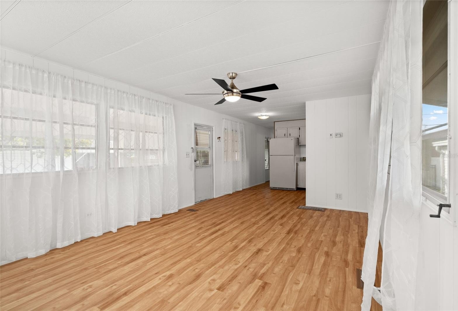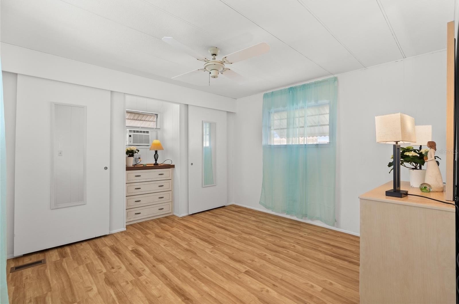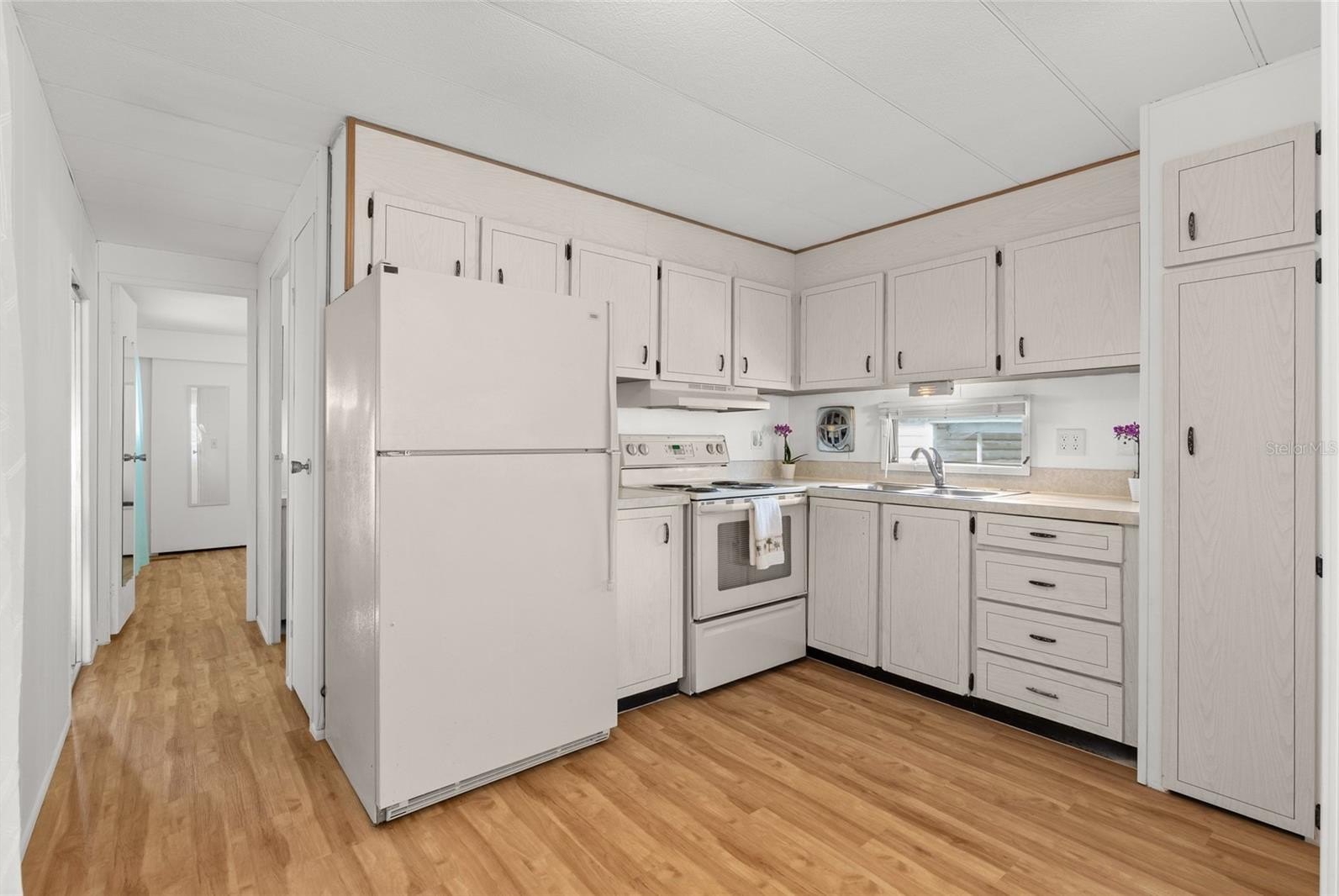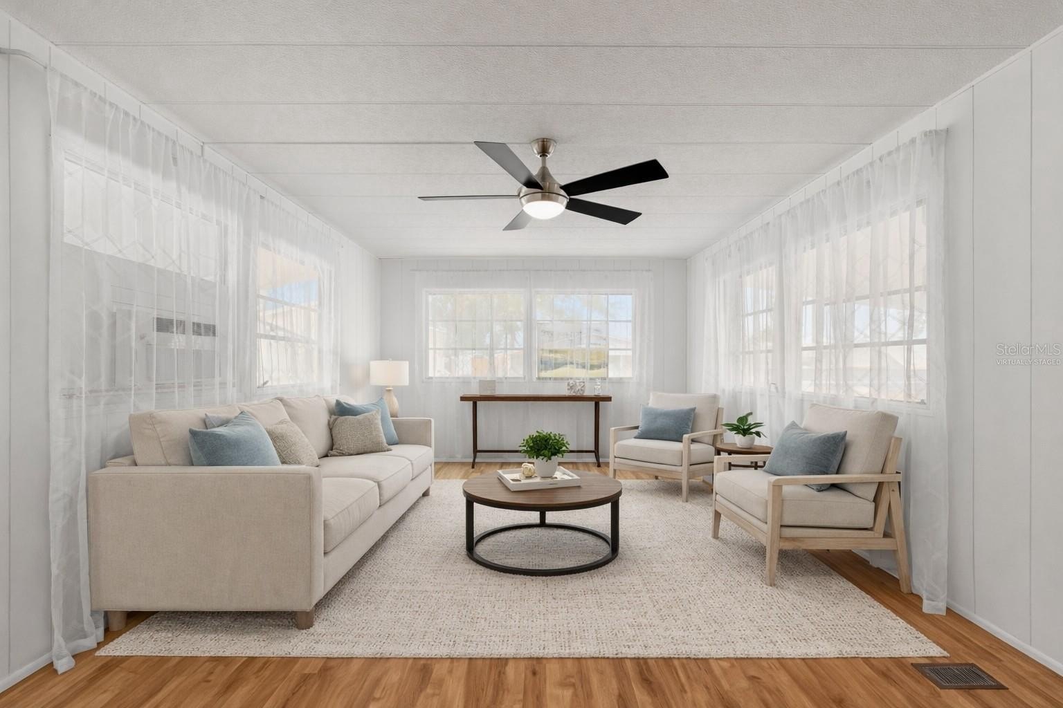 One or more photo(s) has been virtually staged. Welcome to 1012 50th Ave Plz W! Excellent opportunity to purchase this beautifully maintained, 2 bedroom / 1.5 bathroom home in a community with NO HOA, NO age restrictions, and land ownership - no lot rent! This mortgagable manufactured home features a conveniently split floor-plan and has newer light fixtures, creating a clean, updated feel throughout. Brand new luxury laminate flooring enhances the bright living space, while the functional kitchen and spacious layout provide everyday comfort. Bedroom 1 offers two closet spaces for ample storage. Bedroom 2 includes a closet/utility area with an attached half bath, adding flexibility and convenience. Ideally located near popular restaurants, beautiful Gulf beaches, and Sarasota International Airport, this home would be perfect as a primary residence, snowbird getaway, or investment opportunity!