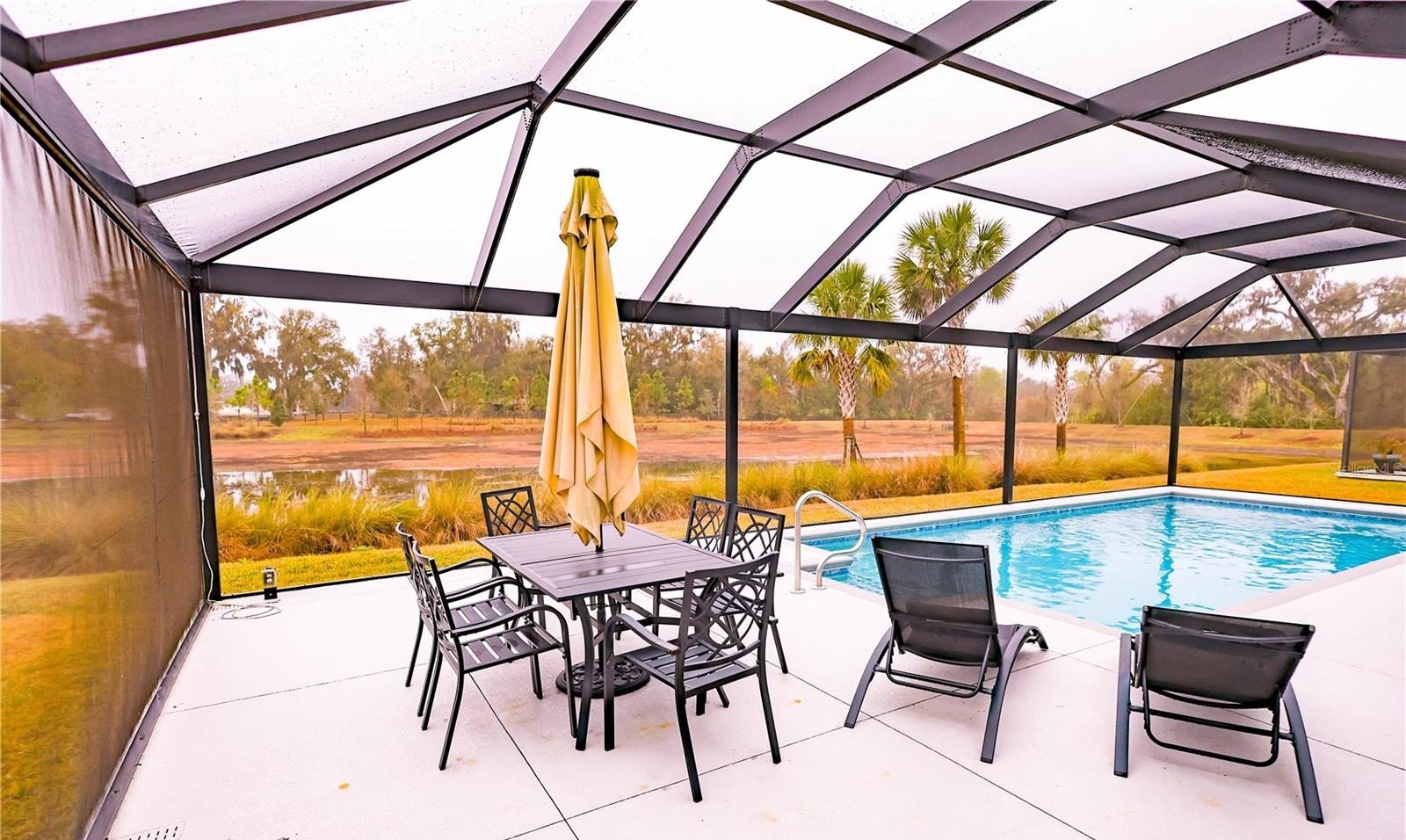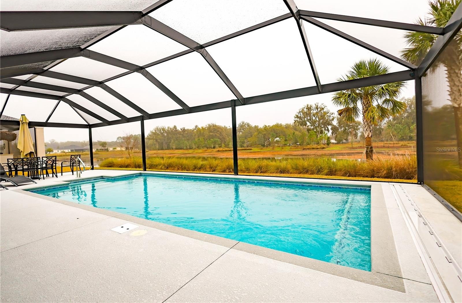 One or more photo(s) has been virtually staged. Serenity, Peaceful, Calming are the three main features of this spectacular Indigo Model Home that sits so beautifully on a private body of water where birds fly by to visit on a regular basis. Sit back and relax in this extended lanai yard or chill in the custom pool while enjoying a beautiful swim or dip. The home has a wonderful open floor plan with 3BRs and 3 Baths. The King Sized Primary Suite with coffered ceilings has it's special bathroom featuring his and hers sinks, a private water closet, walk in closet, and a walk in shower with bench. The amazing thing about this home is the fact that you can enjoy sitting anywhere in the home and have access to the amazing view. You'll love the wonderful choices that were selected only a few years ago when the home was completed in 2022. I am confident that seeing is believing for this beauty, and at this special bargain price, for this type of home with a custom pool with a beautiful open water view. You're going to love this special value.