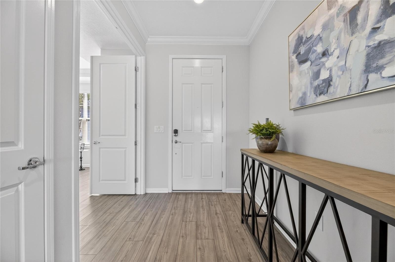 Ready for Resort Style Living? Enjoy the best of 55+ active adult living in this stunning Stardom home that features 2 Primary Bedroom/ Bathroom Suites + Den + 1/2 Guest Bath and a 2 Car garage with extra storage space. This oversized lot feature remarkable POND VIEWS and located in the newest phase of the Gated, Golf cart friendly community of Del Webb Bexley. The 19,000 SF clubhouse offers homeowners a fitness center, ball room, multi-purpose rooms, clubs, planned activities, bistro and more! Outdoors you will enjoy bocce ball, pickle ball, tennis, a resort style zero entry heated pool with lap lanes and an additional walking resistance pool, spa, community garden and even a dog park. Only a short stroll to the amenities, this move-in ready home blends luxury upgrades with unmatched convenience and looks like new. Inside, you’ll find nearly every available upgrade: luxury vinyl plank flooring throughout, custom cabinets and sleek countertops, 8 foot interior doors and crown molding. The open-concept gourmet kitchen boasts a large island with seating for four, walk-in pantry, stainless steel appliances and includes the entertainment pkg. that consists of a separate dry bar area with space for wine refrigerator. The kitchen flows seamlessly into the dining and living areas, all with tranquil water views and sliding doors to the spacious screened lanai—perfect for entertaining or enjoying peaceful outdoor time. A standout feature of this floor plan are the two oversized owner's suites. The primary suite is a true retreat, featuring a pond view with luxurious en-suite bath that has dual sinks, a spacious custom-tiled walk-in shower, linen closet and large walk-in closet. The second bedroom suite also includes the same water view on the opposite corner of the home, a full private bath and walk-in closet, providing comfort for your guests, rather they are living with you indefinitely or only visiting for a short time. Additional highlights include a spacious flex room with french doors and a thoughtfully designed garage entryway with a large wooden coat/shoe rack that has been gifted to you —the perfect drop zone for everyday convenience. Adjacent to the two car epoxy finished garage is a massive storage area (11 ft x 15 ft), an ideal space for a shop or just to hold all your valuable keep sakes / storage items in. Laundry won't be a burden, as you'll enjoy this abundant laundry room with overhead storage and utility tub. Move-in ready and looking like new, this Stardom home at 18535 Coastal Shore Terrace in Land O Lakes, FL offers a private pond view delivering the best of comfort, luxury, and active living. The HOA monthly fee includes internet and cable, use and maintenance of state of the art amenities, landscaping within the common areas inside of the gates and maintenance of the landscape within your home site. A full time activities director and her staff will keep you as busy as you want to be! Del Webb Bexley is conveniently located near shopping, restaurants, the Tampa Premium Outlet Mall, medical facilities, Florida’s west coast beaches and Tampa’s International airport.