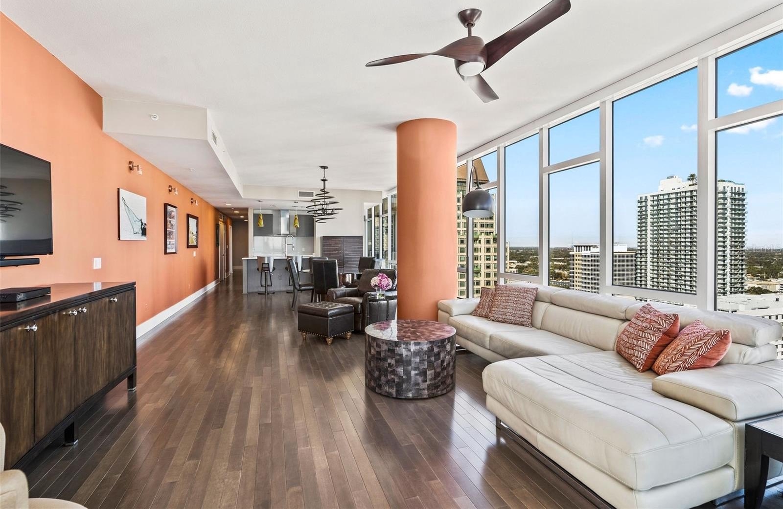 Rising high above the city and capturing the very essence of luxury living, this breathtaking east-facing residence at Signature Place is nothing short of extraordinary. Spanning an impressive 1,829 sq. ft., this 2-bedroom, 2 1/2 bath condominium commands sweeping, unobstructed views that stretch across downtown St. Petersburg and out over the shimmering expanse of Tampa Bay. From sunrise to sunset, every room is bathed in natural light, creating an atmosphere that feels both elevated and effortlessly serene. The stylish Kitchen with waterfall oversized countertop offers plenty of countertop space as well as bar stool seating.