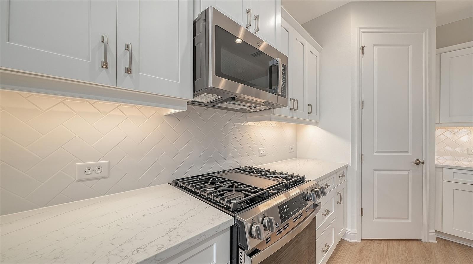 WELCOME TO EASY, ELEGANT LIVING IN THE HIGHLY SOUGHT-AFTER PALM GROVE AT LAKEWOOD RANCH! This TIDEWINDS 2 VILLA offers 1,638 SQ FT OF THOUGHTFULLY DESIGNED LIVING SPACE featuring 2 BEDROOMS, 2 FULL BATHS, A FLEXIBLE DEN/OFFICE, AND A 2-CAR GARAGE. Step into an inviting OPEN-CONCEPT FLOORPLAN with a spacious GREAT ROOM BOASTING 10-FOOT CEILINGS, seamlessly connected to the DESIGNER KITCHEN WITH A CENTER ISLAND, QUARTZ COUNTERTOPS, TILE BACKSPLASH, STAINLESS STEEL APPLIANCES, AND WALK-IN PANTRY. The PRIMARY SUITE FEATURES TRAY CEILINGS, DUAL VANITIES, A WALK-IN SHOWER, AND A GENEROUS WALK-IN CLOSET. At the front of the home, the GUEST BEDROOM AND BATH PROVIDE PRIVACY AND COMFORT FOR VISITORS. Use the additional DEN AS A HOME OFFICE OR FLEX SPACE TO FIT YOUR LIFESTYLE. Step outside to your private SCREENED LANAI BACKING TO PEACEFUL GREENSPACE – ideal for morning coffee or sunset relaxation. Enjoy MAINTENANCE-FREE LIVING IN A GATED COMMUNITY WITH A RESORT-STYLE AMENITY CENTER, including POOL, SPA, FITNESS CENTER, AND PICKLEBALL COURTS. Located just minutes from shopping, dining, top-rated golf courses, and Gulf Coast beaches. EXPERIENCE THE BEST OF FLORIDA LIVING IN A BRAND NEW, NEVER-LIVED-IN HOME — WITH BUILDER WARRANTIES IN PLACE. WHY WAIT TO BUILD? THIS MOVE-IN READY VILLA IS AVAILABLE NOW!