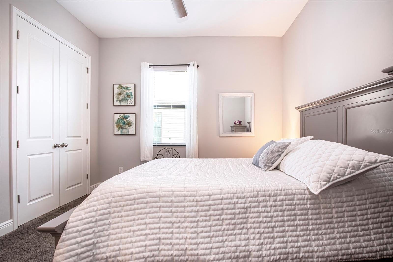 Tile flooring extends throughout all main living areas as well as the primary bedroom and bath, while the secondary bedrooms offer comfortable carpeting. The spacious primary suite is a private retreat, complete with an extra-large walk-in closet and a well-appointed bath with granite countertops. Granite finishes continue throughout all bathrooms, creating a cohesive and upscale look.