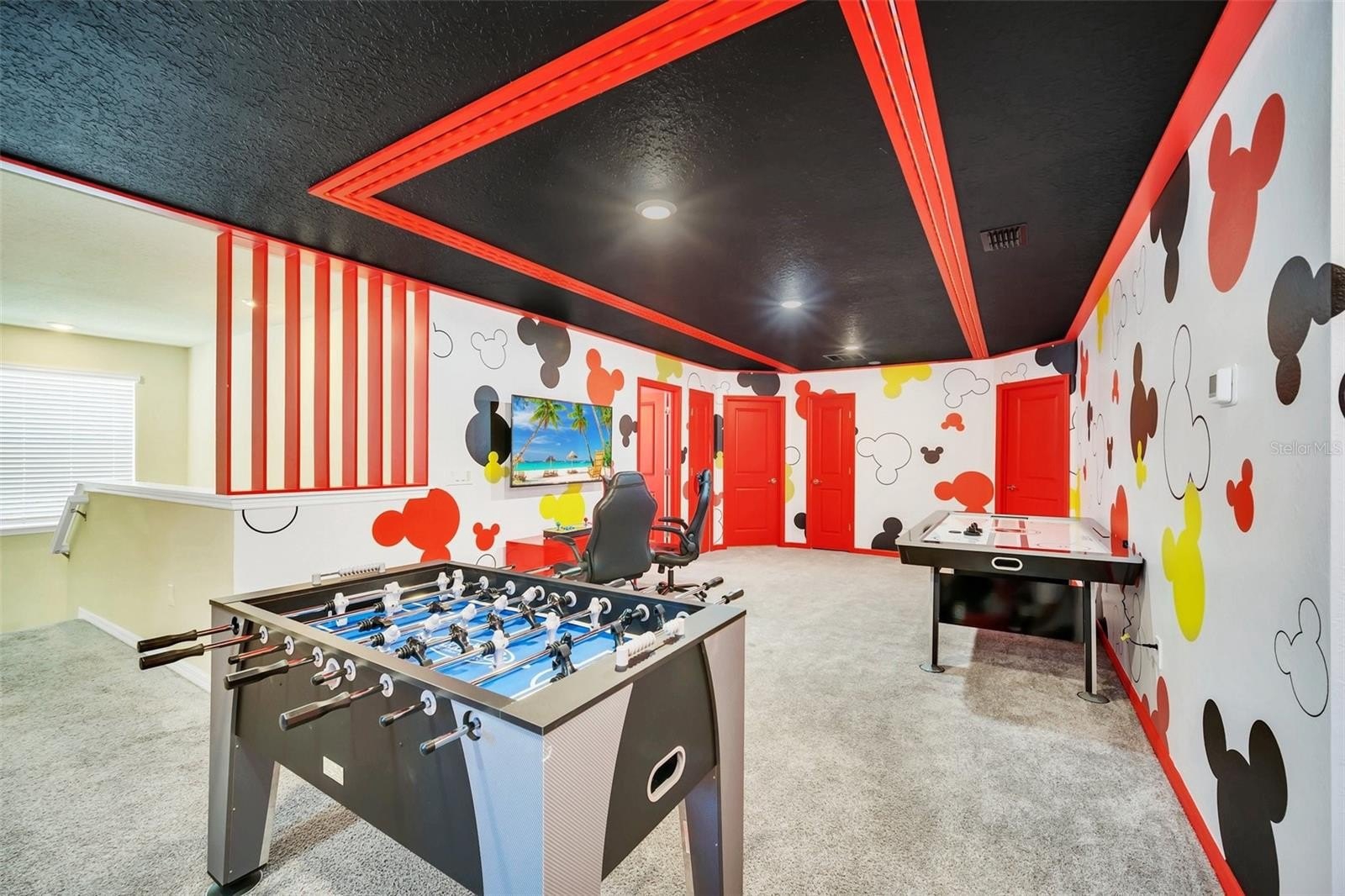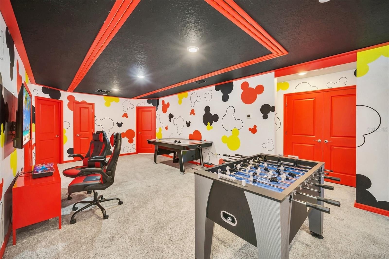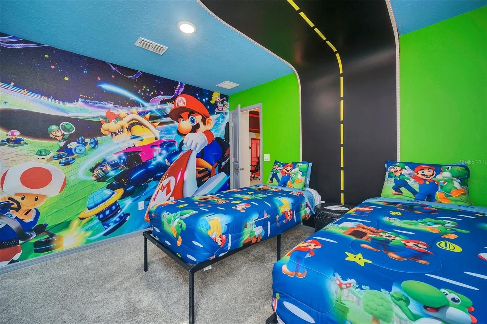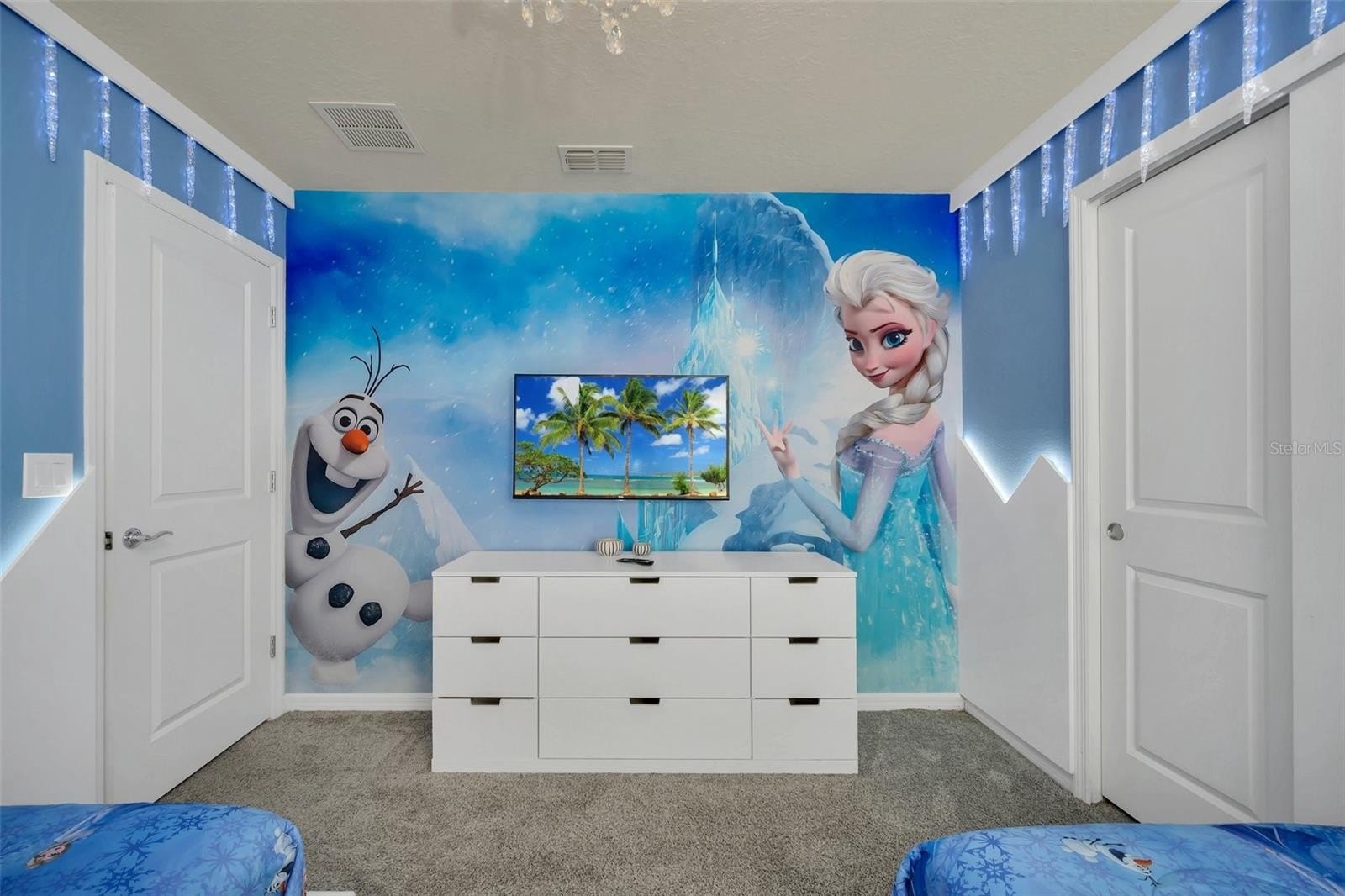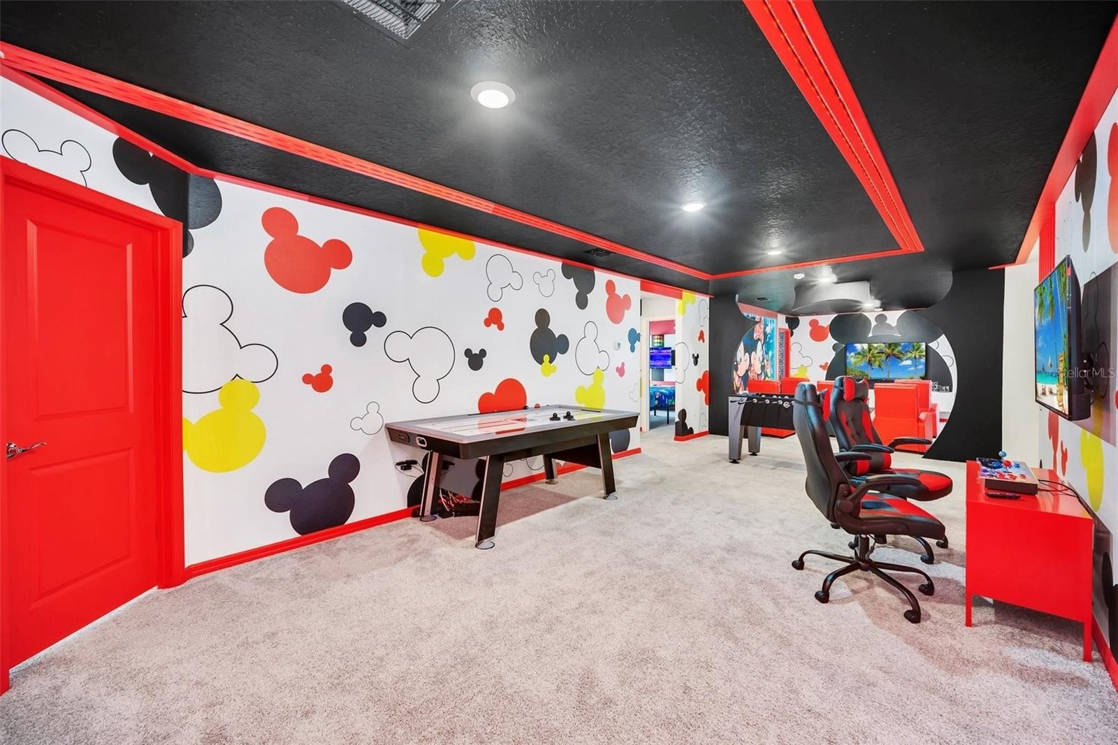 The primary suite features a spacious walk-in closet, while the additional bedrooms offer built-in closets and incredible attention to detail. Several bedrooms are beautifully designed with themed décor, including Harry Potter, Avengers, Mickey Mouse, Frozen, Barbie, and more—creating a fun, immersive atmosphere that truly sets this home apart.