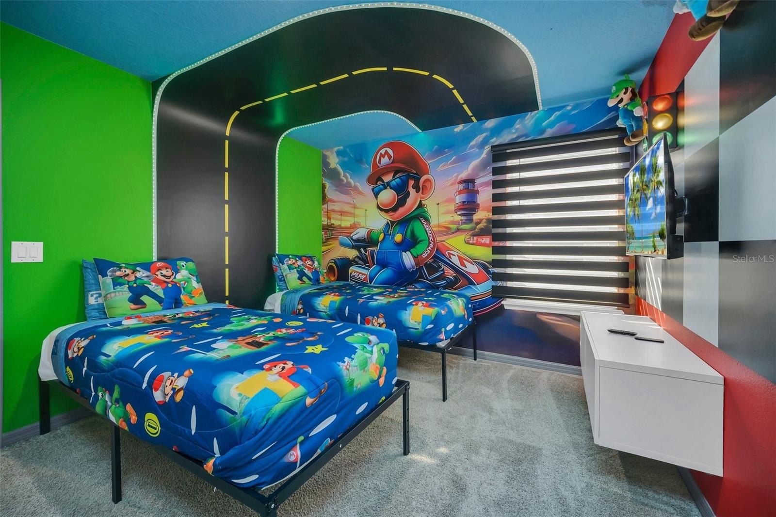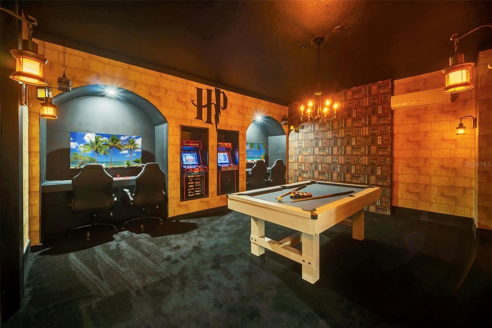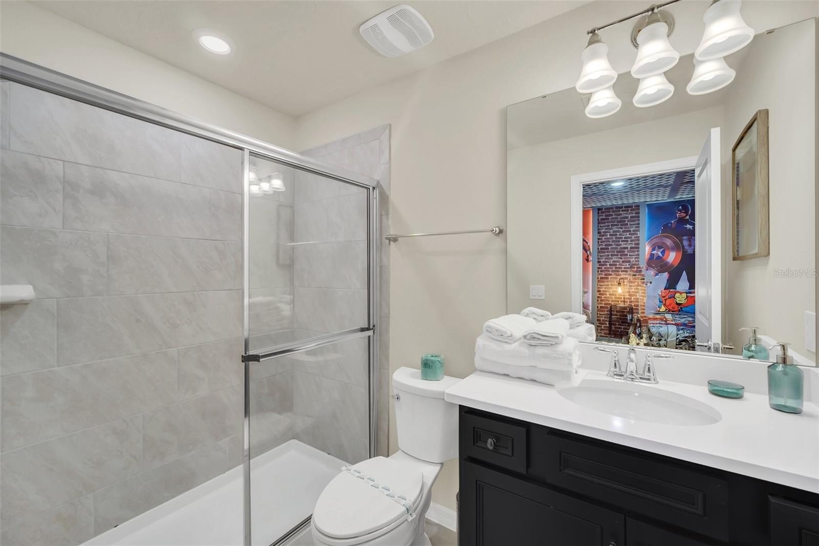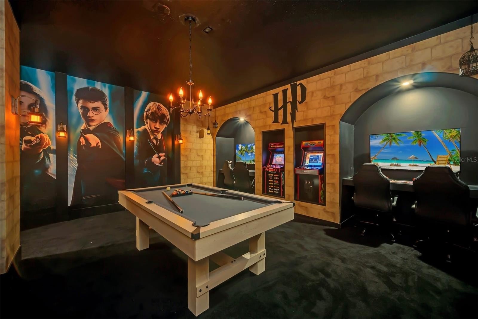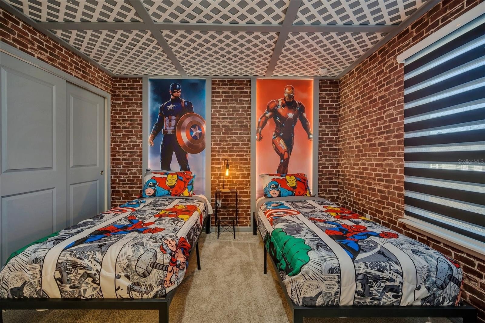 The primary suite features a spacious walk-in closet, while the additional bedrooms offer built-in closets and incredible attention to detail. Several bedrooms are beautifully designed with themed décor, including Harry Potter, Avengers, Mickey Mouse, Frozen, Barbie, and more—creating a fun, immersive atmosphere that truly sets this home apart.