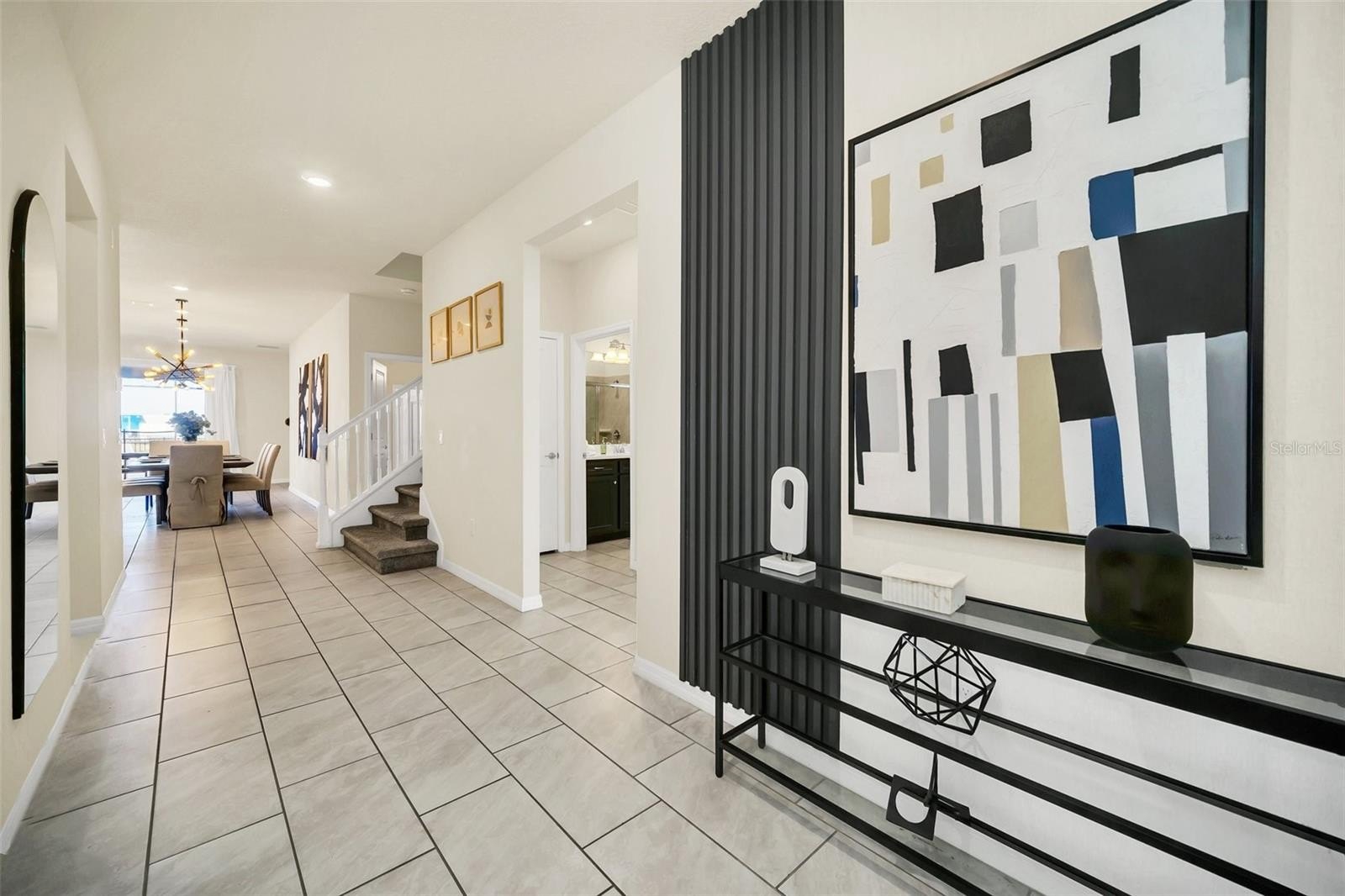 The home boasts a bright open floor plan with spacious living and dining areas, perfect for entertaining and everyday living. The kitchen is both elegant and functional, featuring solid wood cabinets, stone countertops, and all appliances included. A dedicated game room adds even more entertainment value for family and guests.