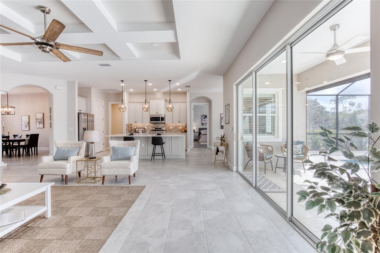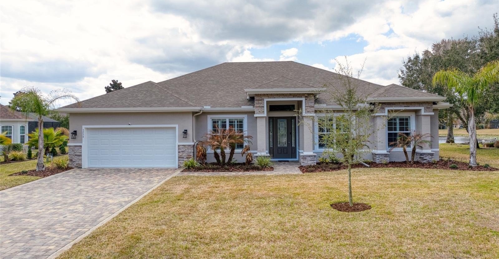 Impressive 2024 SeaGate ''Pine Valley'' Luxury Estate Model in Halifax Plantation. Experience the pinnacle of modern living in this 4-bedroom, 2-bath pool home, perfectly situated on a generous 99' x 125' lakefront lot. A fully pavered driveway and elegant stacked stone veneers provide striking curb appeal. Inside, an expansive lake view serves as the backdrop to the open-concept living space, featuring sleek tile flooring and soaring coffered ceilings. The chef-inspired kitchen flows seamlessly into the great room, boasting a massive quartz island, 42'' cabinetry, stainless appliances, and a walk-in pantry. Retreat to the primary suite, a private sanctuary with lake views, LVP flooring, dual walk-in closets, and a spa-like ensuite featuring a wraparound quartz vanity and a walk-in shower. Through triple-collapsible sliding doors, discover your backyard oasis: a massive lanai overlooking a brand-new (2025) 16,500-gallon pool. Framed by impeccable travertine decking and a summer kitchen, it's the ultimate setting for entertaining.