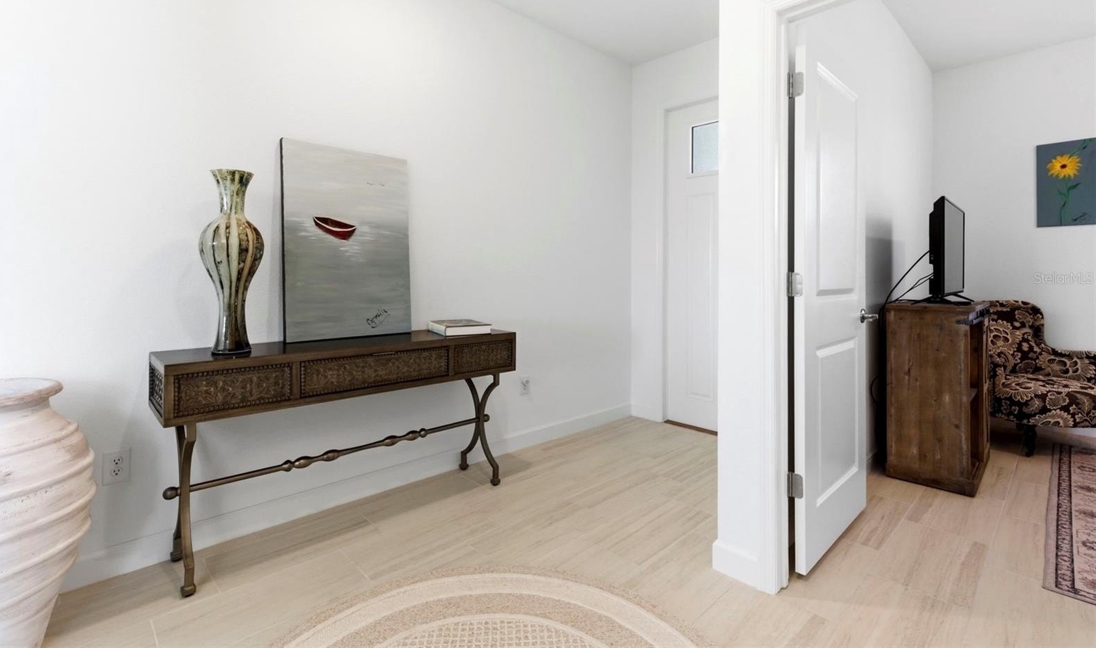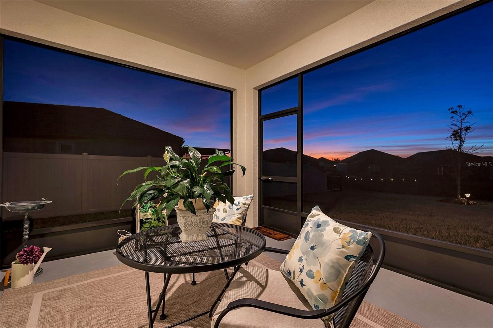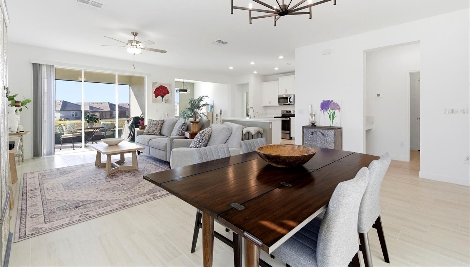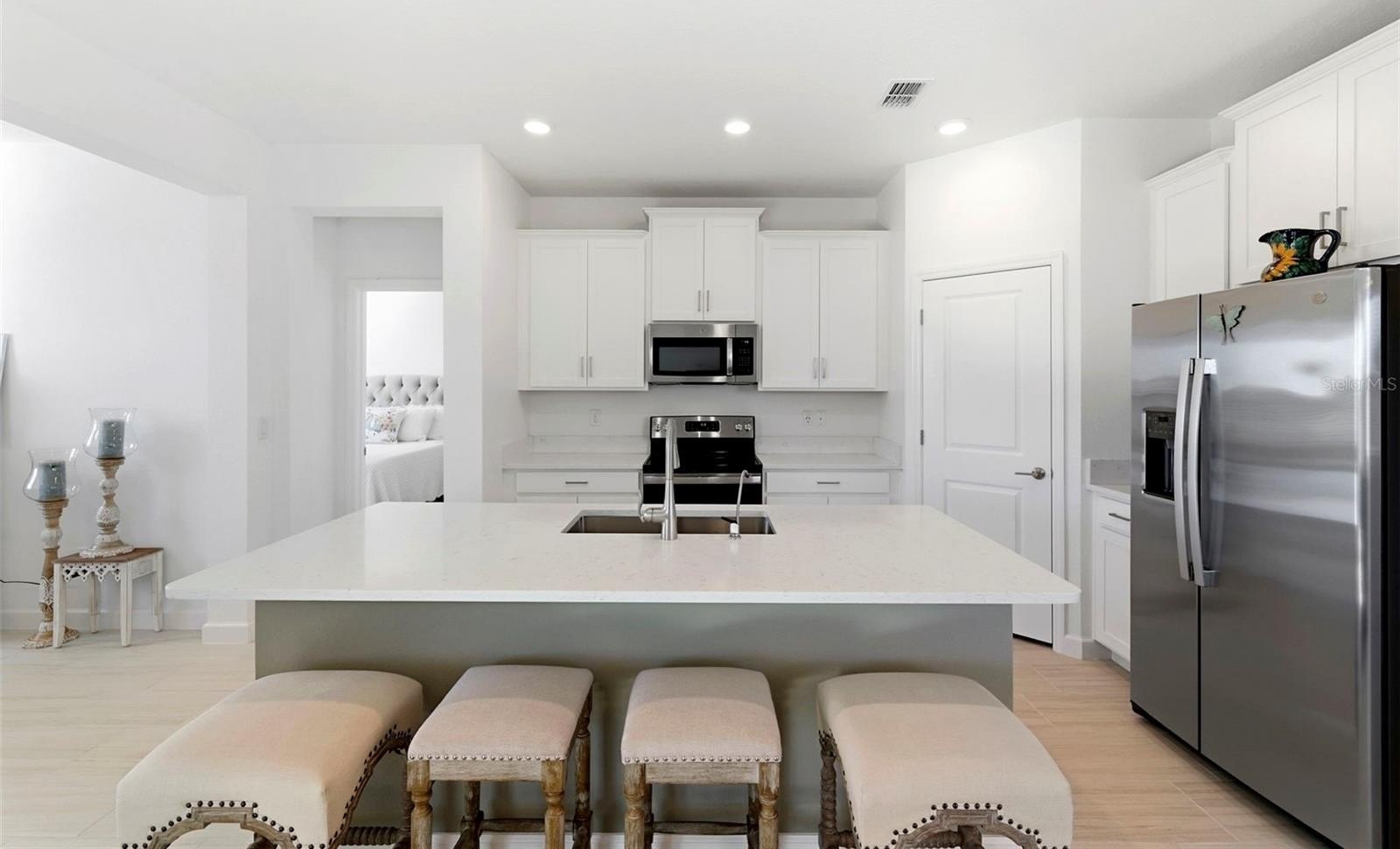 MOVE IN READY. UPGRADED THROUGHOUT. RESORT LIFESTYLE. Welcome to 10499 Gable Dig Loop, A beautifully maintained Morningtide model located in the highly sought after Medley at Mirada, an Active Adult (55+) community. This thoughtfully designed home offers 2 bedrooms, 2 bathrooms, a versatile flex space ideal for a den, office, or hobby area, an open living and dining space, oversized 2 car garage, and a covered, screened lanai overlooking a peaceful pond, perfect for relaxing year-round. This CONCRETE BLOCK includes quality interior highlights such as extended plank tile flooring throughout the entire home with no carpet, custom designer lighting, abundant natural light, and a bright, OPEN LIVING DESIGN. The kitchen and bathrooms feature QUARTZ countertops, brushed nickel finishes, ample cabinetry, a walk in pantry, and a reverse osmosis water connection already built into the quartz for easy future hookup. The primary suite offers dual vanities, a spacious walk-in closet, and a beautifully Finished walk-in shower with frameless glass door, subway tile surround, and built-in niche. A convenient drop zone with quartz counter near the laundry area provides additional everyday functionality. OUTDOOR FEATURES include a fully screened, professionally installed seamless gutters, brick paver walkway and driveway, and a durable flat style concrete tile roof designed for long term performance. Built for efficiency and protection, the home includes a Florida Building Code compliant wind rated garage door, energy efficient double pane Low E windows, Lennar Smart Home technology with smart thermostat, video doorbell, and WiFi garage opener, and an A. O. Smith hybrid heat pump water heater that reduces energy use while helping cool and dehumidify the garage. Ideally located just minutes by golf cart to the PRIVATE Medley residents clubhouse where living like you're on VACATION is a must. Featuring a resort-style pool, state-of-the-art fitness center with a dedicated group exercise studio, elegant ballroom with stage and dance floor, billiards lounge, and a convenient pet spa. Social and dining options include a full-service indoor restaurant and bar, along with a vibrant poolside bar and grill offering food and beverages in a true resort setting. Exclusively for Medley residents, the soon to be completed Tiki Pavilion will boast a scenic boardwalk to the private community beach, complemented by mini golf, a putting green, bocce ball courts, welcoming social areas, and a clubhouse with restroom facilities. Your new home offers convenient access to amenities while remaining tucked away from community traffic for added peace and privacy. Medley residents enjoy MAINTENANCE FREE living with comprehensive lawn care, irrigation, exterior maintenance, and cable & high speed UltraFi internet. Ownership at Medley includes exclusive resident access to the 15-acre Mirada Lagoon, with guest passes available for family and friends. Enjoy private sandy beach areas, resident-only swimming zones, kayaking, paddleboarding, food and beverage service, and year-round events. Resort-style features include a waterslide, lounge areas with cabanas, and a swim-out island perfect for relaxing in the Florida sunshine. Conveniently located near I-75, The Shops at Wiregrass, Tampa Premium Outlets, KRATE at the Grove, dining, medical facilities, and everyday conveniences.