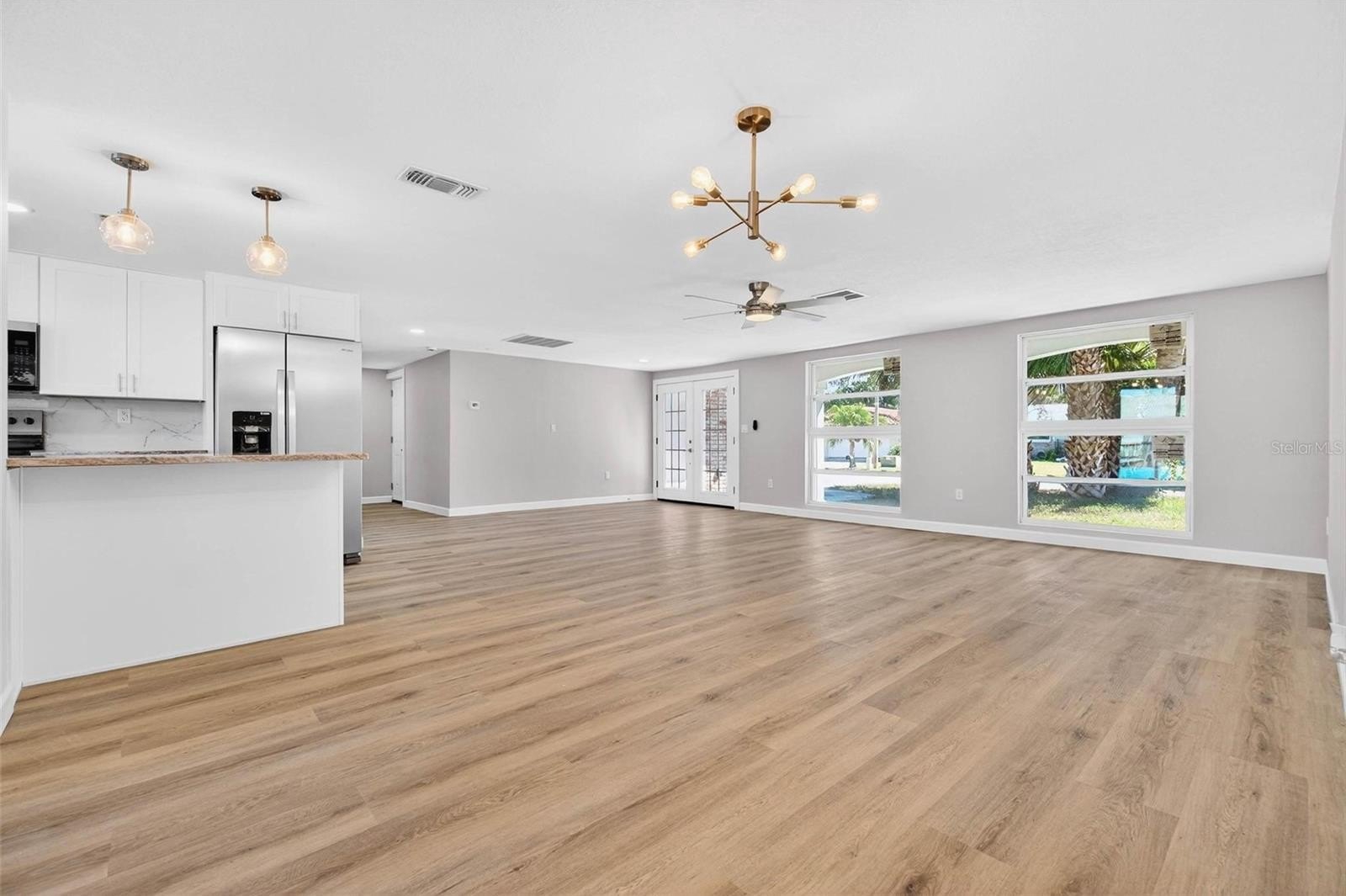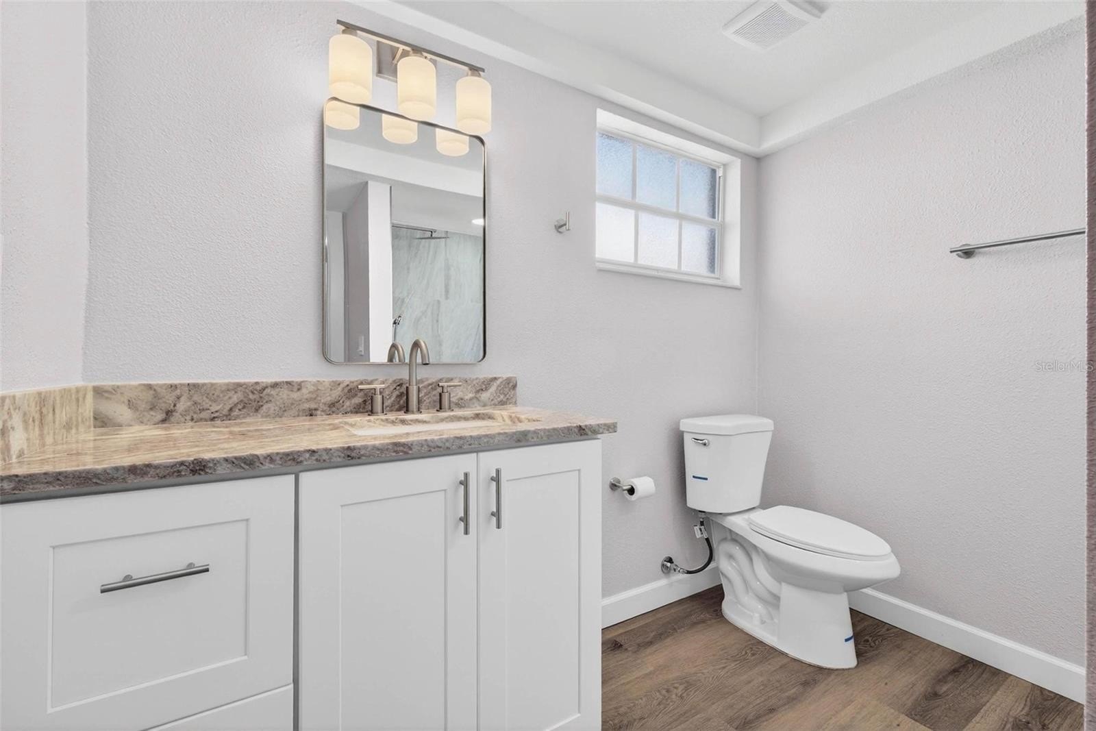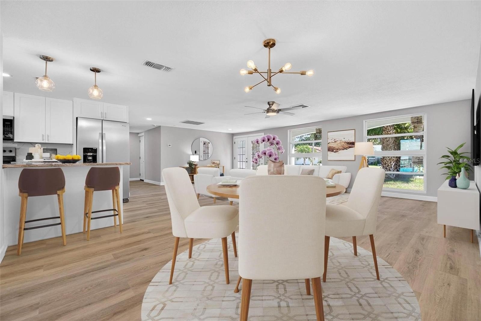 Inside, the desirable split-bedroom floor plan features luxury vinyl flooring throughout, brand-new hurricane impact windows, new sliding doors, new kitchen with granite countertops, quality cabinetry, new appliances and disposal, updated electrical with a new panel & GFCI outlets/proper grounding throughout and more! Nearly every surface has been replaces and thoroughly upgraded. Additional improvements include a newer roof, new water heater, new exterior, redesigned garage door façade, and finished garage flooring.