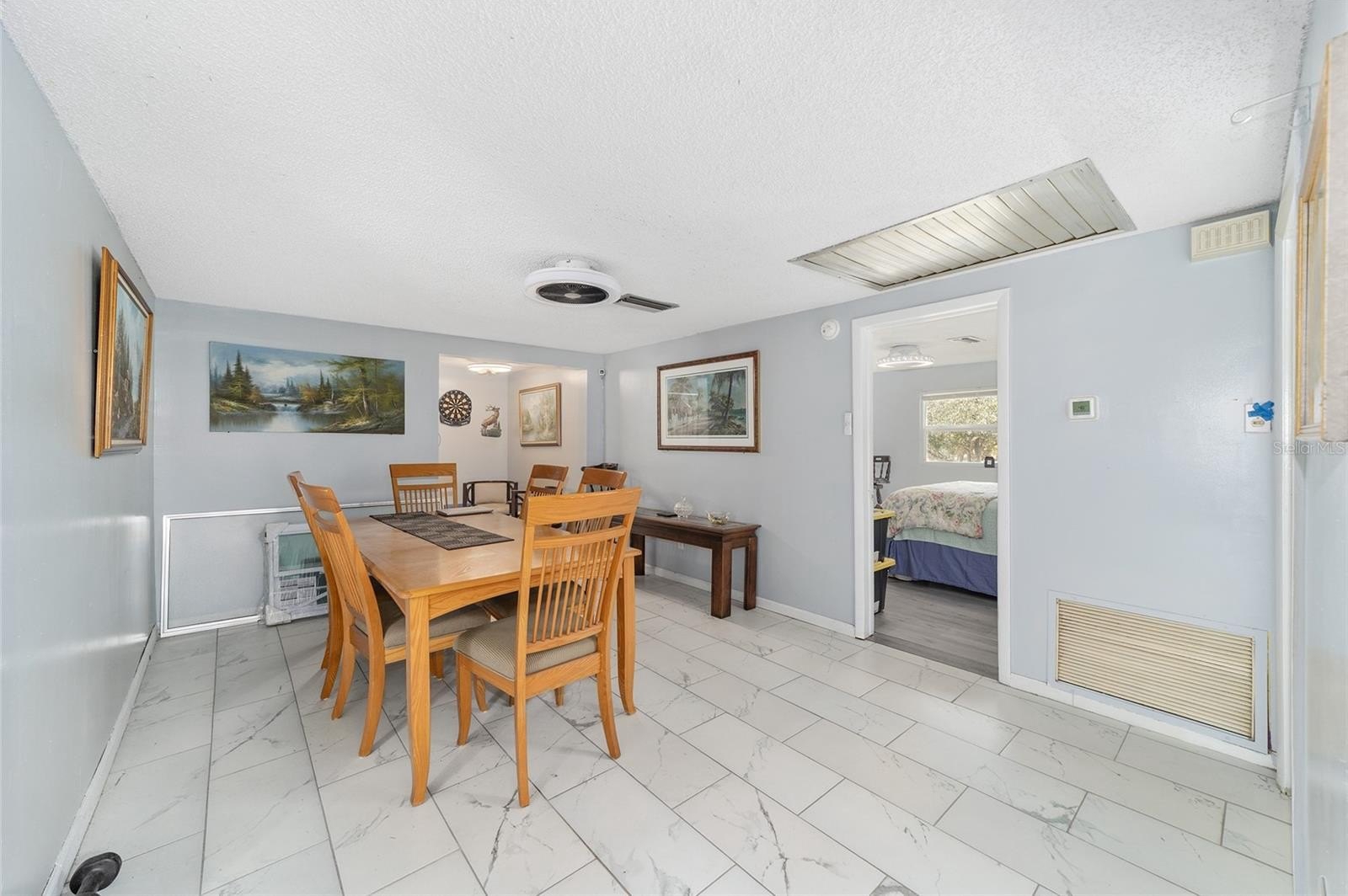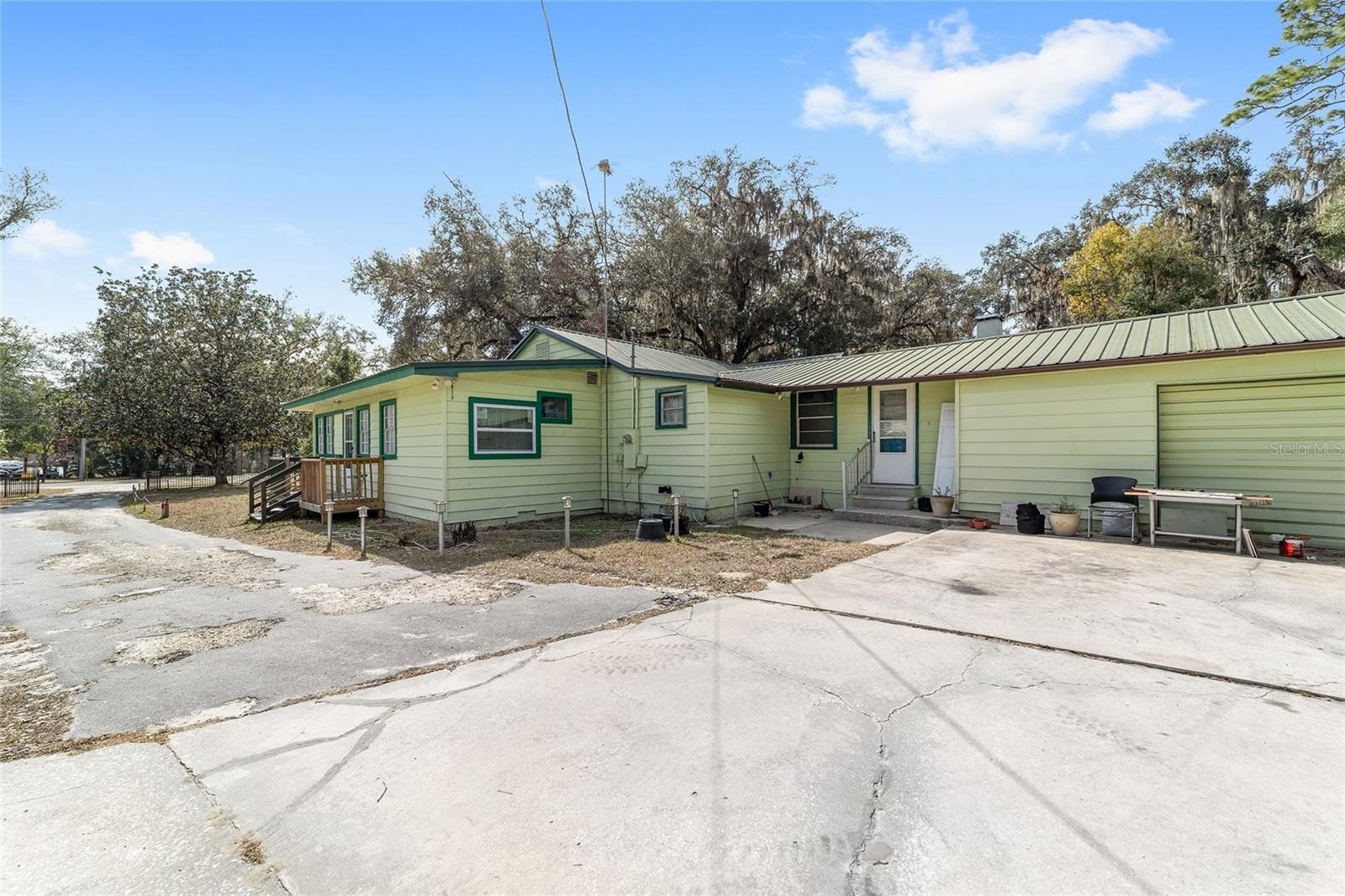 Searching for a home on acreage with plenty of room to expand and grow? This charming 3-bedroom, 2-bath home sits on just over 2 acres behind a private gated entrance, offering the peaceful country setting you’ve been dreaming of while still keeping you close to everyday conveniences. Scattered shade trees and a serene, park-like landscape create a quiet retreat that feels worlds away, yet you’re only minutes from shopping, dining, parks, and more. Inside, the home features solid construction and timeless character, including a durable metal roof, an updated A/C unit (2019), and a classic floor plan ready for your personal touch. Laminate and tile flooring flow throughout, and the spacious eat-in kitchen provides ample counter space, generous cabinetry, white appliances, and a pantry for extra storage. As an added benefit, the property includes a private entrance to a separate living space, creating an excellent opportunity for rental income or multi-generational living. Outdoor living is easy with two inviting decks perfect for morning coffee, evening unwinding, or weekend gatherings. The property also includes a garage and a block-built detached workshop/storage building providing an ideal setup for hobbies, equipment, or future expansion. With partial fencing already in place, the acreage is well-suited for pets, play, gardening, or building additional structures as your needs grow. Despite its peaceful rural feel, this location keeps you close to everything. You’re just a short drive from The Villages, medical facilities, public parks, and local conveniences. Outdoor enthusiasts will love being near Santos Trails for hiking and biking, Lake Weir for boating and fishing, and Baseline Golf Course just over a mile away. This property offers the rare combination of space, privacy, and convenience, making it perfect for anyone seeking room to breathe without sacrificing access to modern amenities.