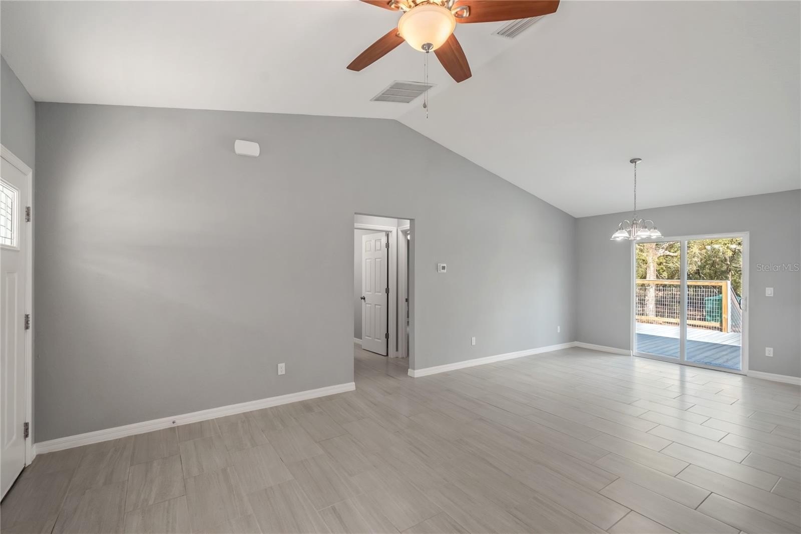One or more photo(s) has been virtually staged. Nestled on an oversized lot with nearly 2-acres of space within Rainbow Acres, this like-new move-in ready home was constructed in 2022 and offers the perfect blend of modern comfort and outdoor opportunity. Offering a total of 3-bedrooms and 2-baths with 1,229 sqft of space, the home is thoughtfully designed for easy living and lasting durability. Inside, the home features ceramic tile flooring throughout, tall vaulted ceilings, and abundant natural light throughout. The living and dining rooms are incredibly welcoming, ideal for entertaining or everyday living. The kitchen is nicely designed with granite countertops, plenty of cabinet storage, stainless steel appliances, an additional pantry, and easy access to the laundry room. The primary suite is a comfortable retreat that features a walk-in closet and a well-appointed en-suite with a walk-in shower and modern finishes. Two additional guest bedrooms are in place, with plenty of potential for use as a home office or hobby space if desired. A sliding glass door in the living area opens up to the spacious rear deck, which is the perfect place to enjoy evening gatherings, a morning coffee, or simply enjoy the peaceful views of the backyard. For those needing workspace, storage, or room for projects, the brand-new 26x80 workshop is a standout feature. This impressive structure provides abundant space for equipment, vehicles, hobbies, or business needs, making it an exceptional addition to the property. Located just a short drive from Rainbow Springs State Park, the Rainbow River, the Goethe State Forest, and the town of Dunnellon, this property offers easy access to a variety of outdoor recreation without losing convenient access to a variety of shopping, dining, and entertainment options. Both Ocala and Gainesville are a scenic commute away, opening up even more options for those looking to get the most out of North Central Florida. This move-in ready home combines modern construction, generous land, and a substantial workshop—an ideal opportunity for those seeking space, functionality, and proximity to one of Florida’s most treasured natural destinations!