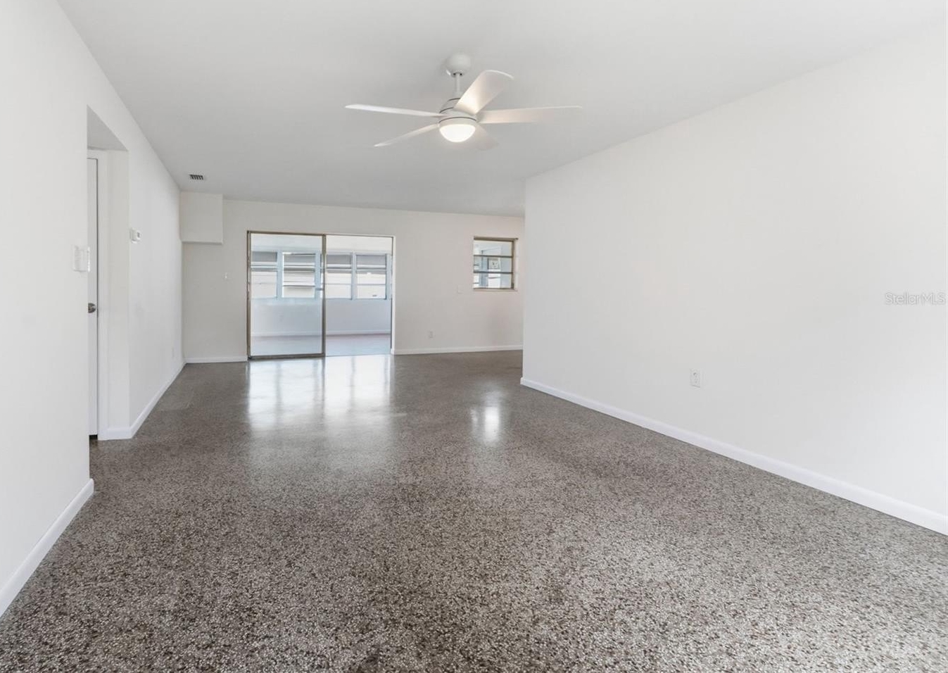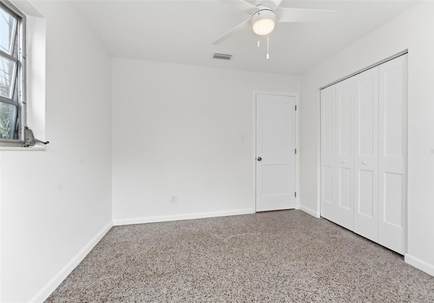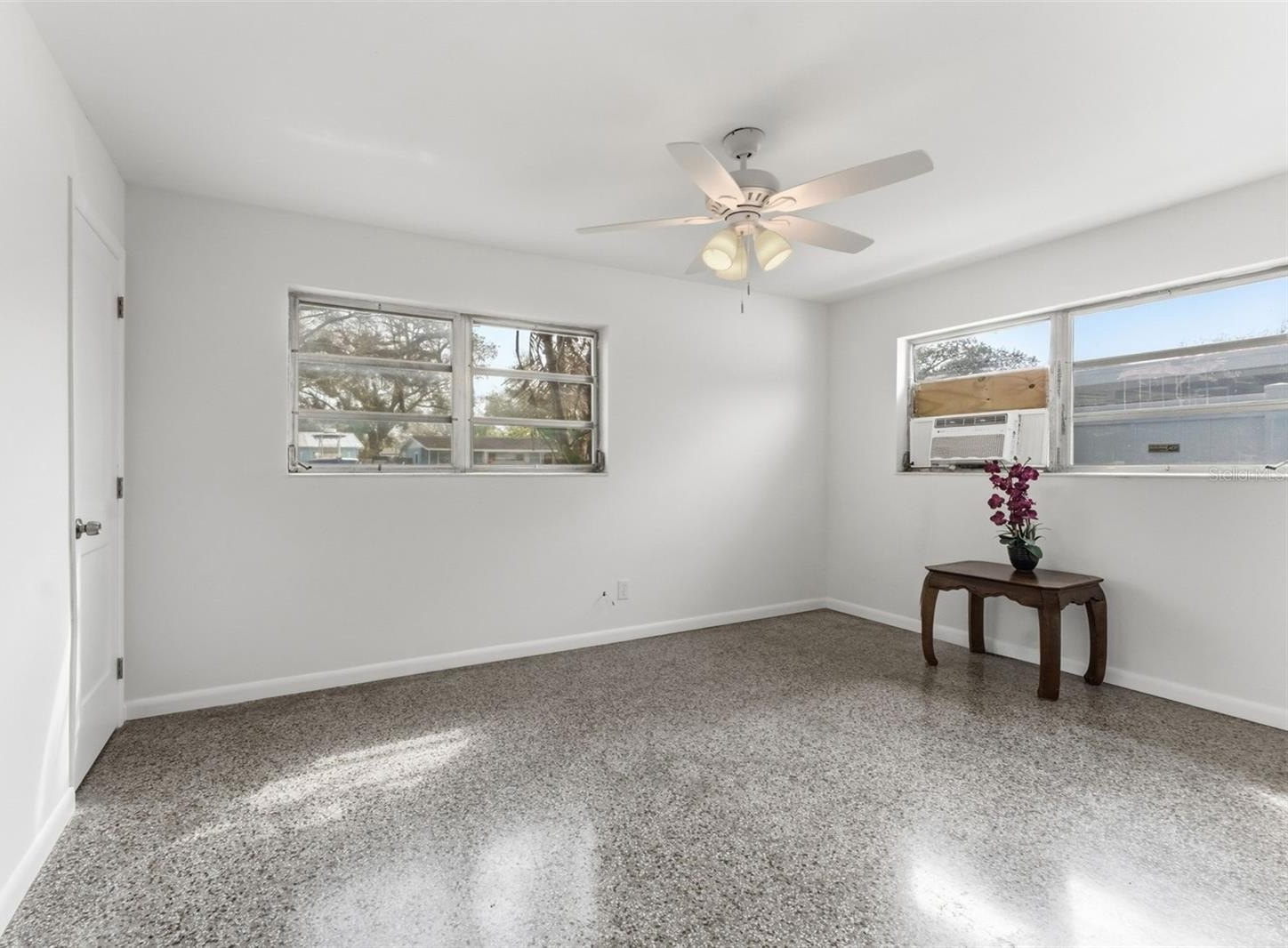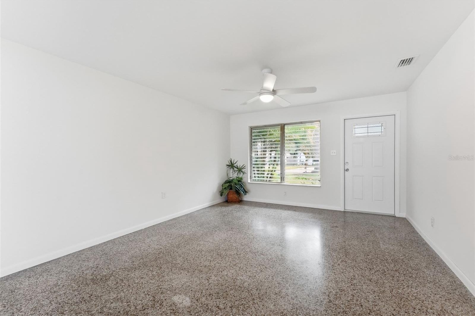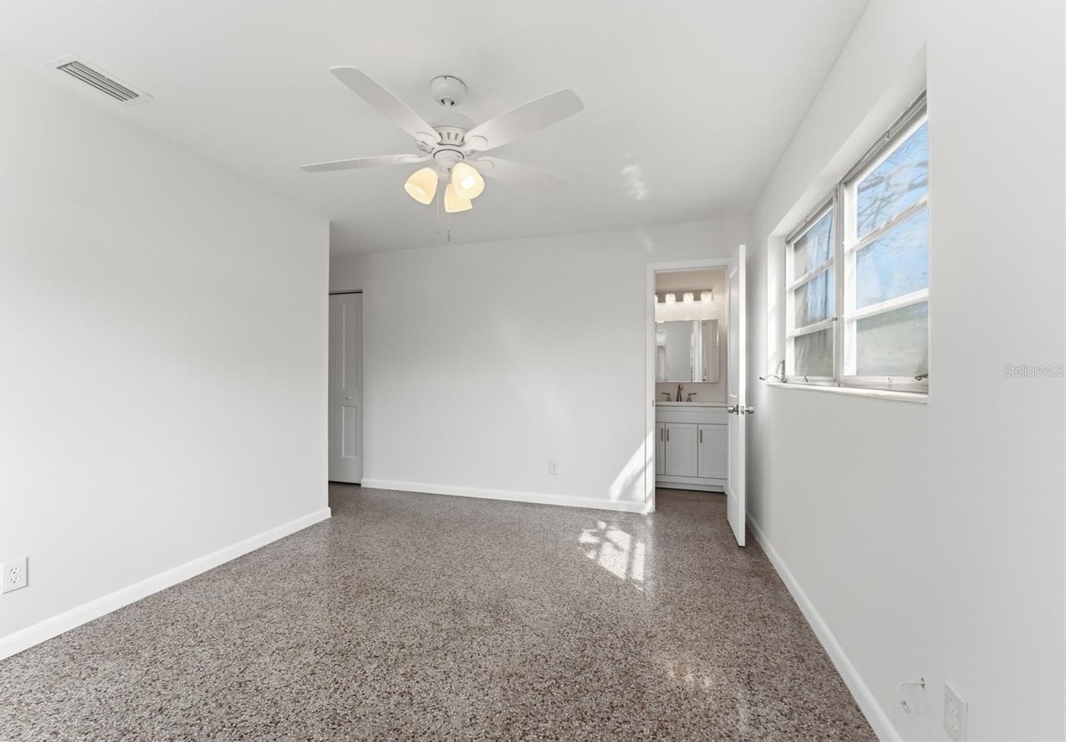 Inside, you’ll find beautiful terrazzo floors, abundant natural light, and neutral tones throughout. The wide galley kitchen features granite countertops, stainless steel appliances, and an abundance of shaker-style cabinetry. Central AC runs throughout the home, and the AC unit is brand new.