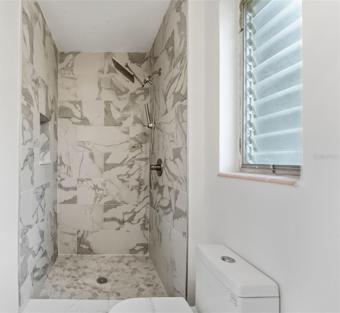 The primary suite includes a walk-in closet and an ensuite bathroom with a beautifully tiled shower. The second and third bedrooms are well-sized with ample closet space and easy access to the fully upgraded second bathroom.