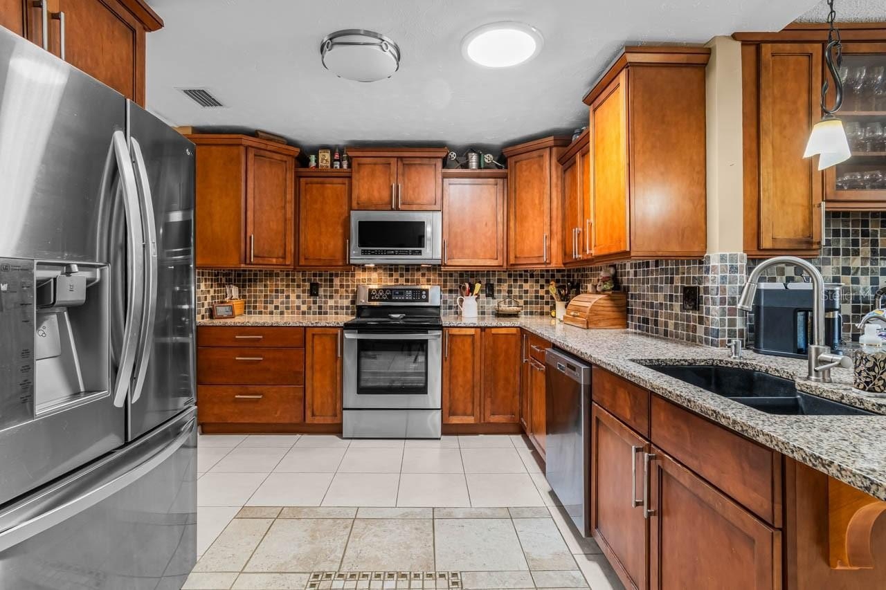 Beautiful 3-bed, 2-bath, 2-car HEATED POOL HOME with GOLF COURSE VIEW in the lovely Caloosa Country Club Estates neighborhood in the dynamic 55+ community of Sun City Center! Featuring PLANTATION SHUTTERS, pocket doors, CHAIR RAIL, mature landscaping with STAMPED CURBING, PAVER DRIVEWAY, Nest thermostat, NEWER hot water heater (2023), remote control sprinkler system, and REVERSE OSMOSIS. The pool includes a roll-on cover, NEW pump & heater, and is surrounded by a PAVER DECK and SCREENED CAGE. There is also a 7-PERSON HOT TUB for ultimate relaxation! Enter through the COVERED & SCREENED FRONT PORCH to a lovely open concept layout. The kitchen shines with its GRANITE COUNTERTOPS, STAINLESS STEEL APPLIANCES, WOOD CABINETRY, dinette space, and WET BAR with its own sink! The dining room has incredible build-ins surrounding the gorgeous view. The primary bedroom comes equipped with a WALK-IN CLOSET and EN-SUITE BATHROOM, complete with a DUAL-SINK VANITY and WALK-IN SHOWER! The secondary bedrooms and bathroom are located on the other side of this SPLIT-BEDROOM floorplan, allowing additional privacy, and one of the bedrooms even has its own WALK-IN CLOSET! The Laundry Room includes its own cabinetry and LG washer/dryer, and the garage features a WORKBENCH and its own refrigerator! Overall, this home is poised to be both a respite and a destination. Sun City Center is a community designed with resident enjoyment in mind. Find peace and fun in this beautiful home and neighborhood. Schedule your showing today!