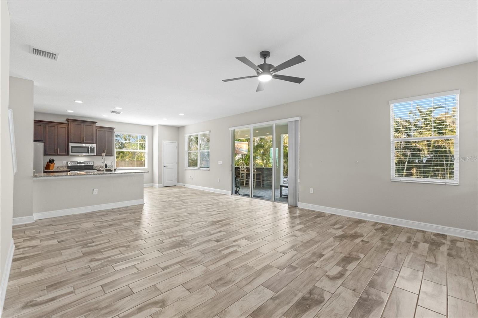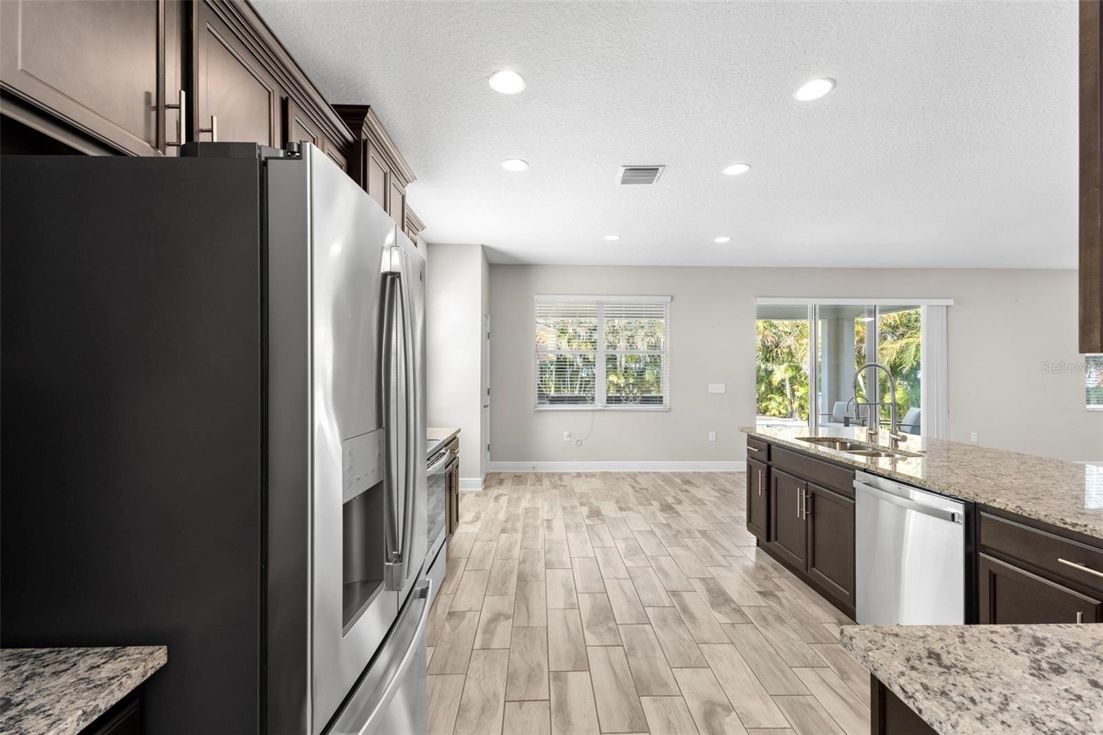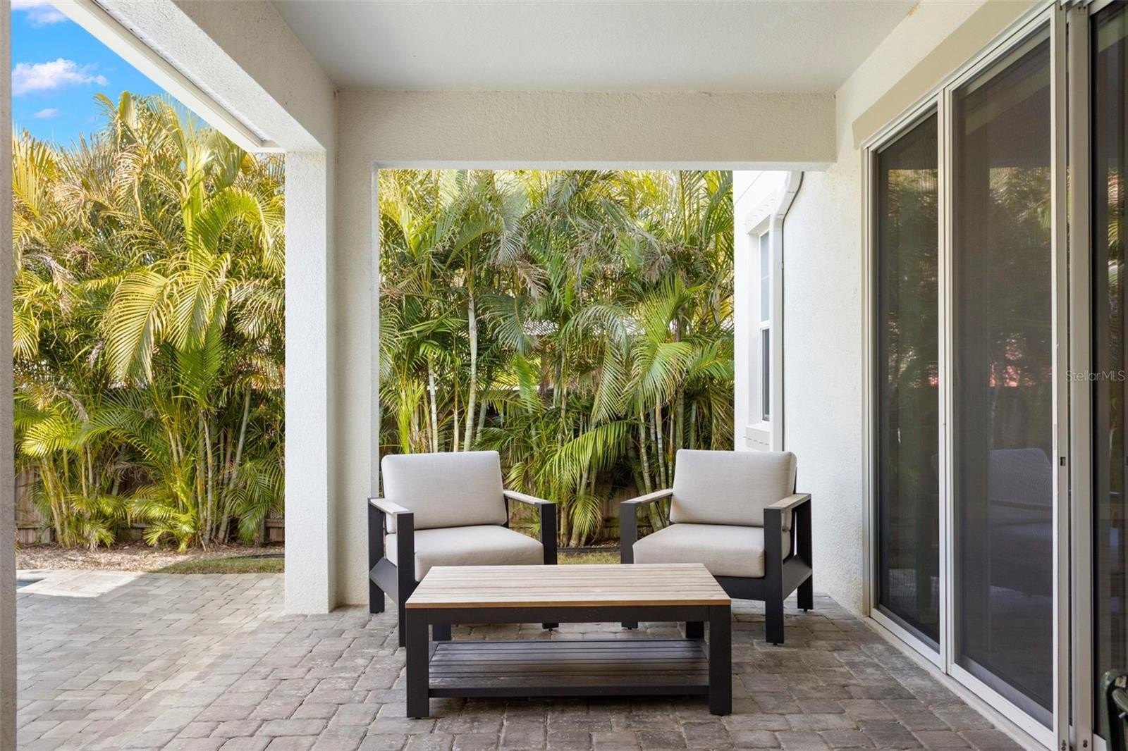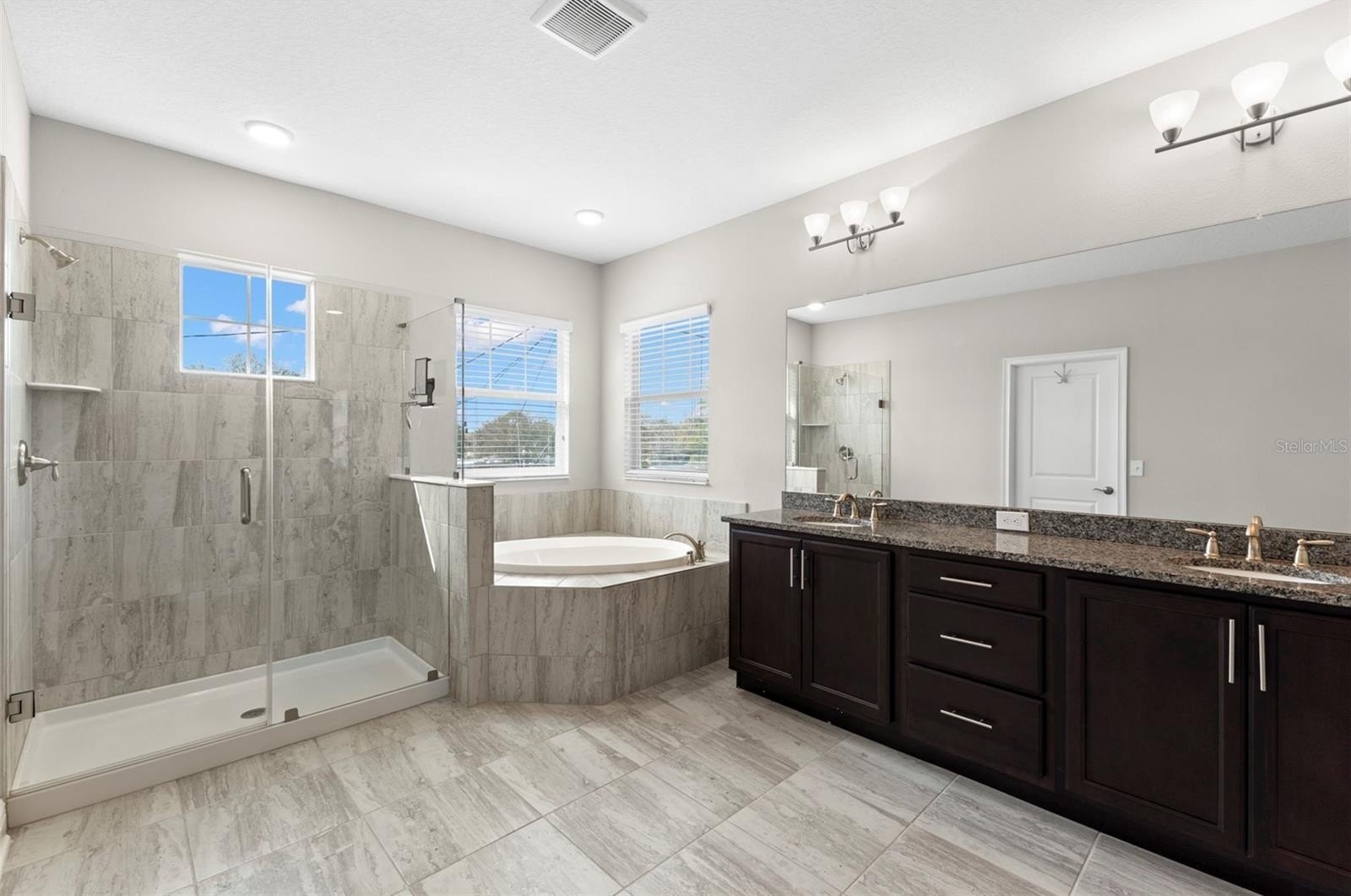 One or more photo(s) has been virtually staged. This stunning newer construction home is a true masterpiece located just a stone's throw from Walter Fuller Park with its expansive pool, recreation center, sports complex, tennis/pickleball courts, fields, and more. Curb appeal shines with a brick paver driveway, elegant stone-finished exterior, mature tropical landscaping/majestic oak tree, and a welcoming covered front porch. Step inside to an open, light-filled layout boasting high ceilings, recessed lighting, wood blinds throughout, ceiling fans with decorative lighting, and beautiful wood-look tile floors in living areas. The oversized formal dining room offers ample space for an additional seating area with views of the front yard. The gourmet kitchen features granite countertops, breakfast bar, double undermount sink, stainless-steel appliances, closet pantry, and an eat-in space overlooking the Great Room and pool with sliding doors to the covered lanai. A guest suite on the first floor provides convenience with easy access to a hall bathroom. Upstairs, enjoy a split bedroom floor plan plus a versatile BONUS room/flex space ideal for a playroom, den, or office. The resort-style owner's suite is a true retreat complete with double entry doors, tray ceilings, dual vanities, garden tub, stand-up shower, separate water closet, linen closet, and an oversized walk-in closet with custom built-in organizers. An inside utility room on the second floor includes cabinets for extra storage and an ironing station. Entertain effortlessly in the incredible backyard tropical oasis with a covered lanai with an outdoor kitchen equipped with refrigerator, gas grill, and side burners, plus a gas fireplace that spills over to the sparkling pool with sun shelf. Enjoy privacy with the Areca Palm hedges, and your favorite game or movie on the flatscreen TV. Additional highlights include a wood privacy fence, hurricane shutters for peace of mind, security cameras, two-car garage with Tesla charging station including PowerShare capability, attic pull-down access, decorative wall cut-outs for artwork and so much more. This exceptional home blends modern luxury, tropical vibes, thoughtful details, and prime location central to beaches and all that St. Pete has to offer. Start Living Today!